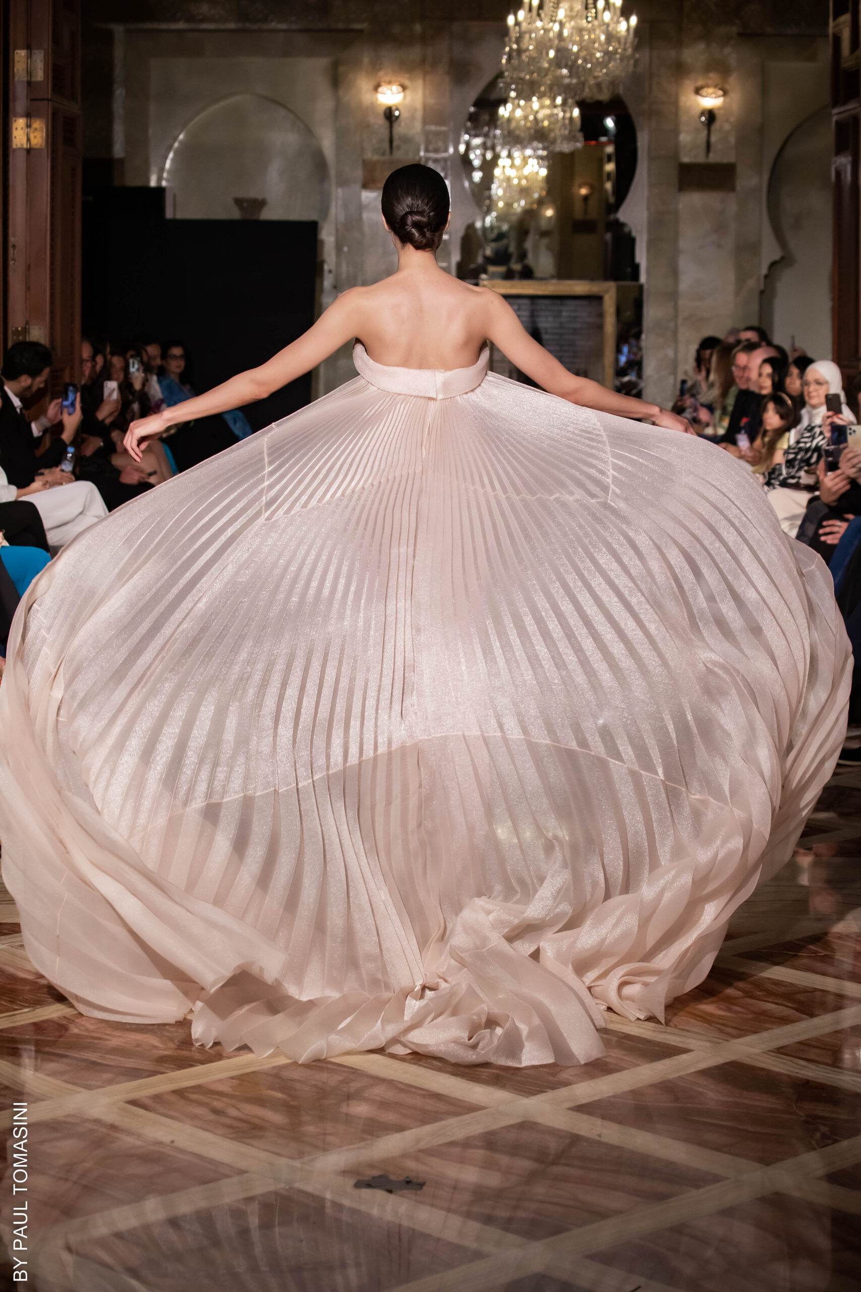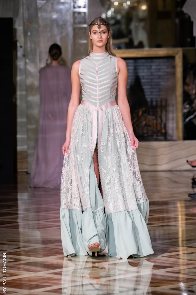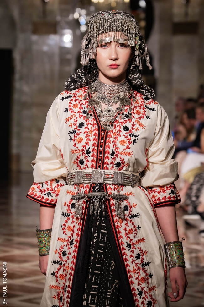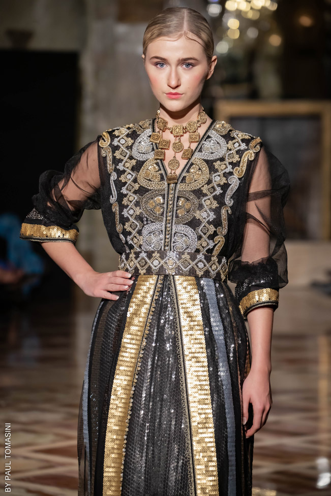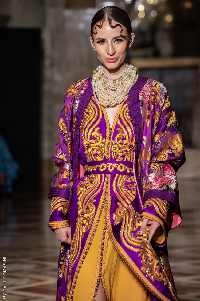 A contest is organized in partnership with the fashion schools: Ateliers Chardon Savard (Paris), Escom bel (Fez) and Academia Moda de Nazareth, under the attentive eye of a jury of great value persons such as Said Mahrouf (designer), Christophe Guillarmé, (designer), Saher Okal (designer), Olfi Yasmina (Fashion Mintea), influencer, Khadija Dénia (Journalist, My luxury Life), Marzio Nocera (Fashion Channel), Angela Donova (Journalist), the winner will participate to the next edition of the Oriental Fashion Show in Paris.