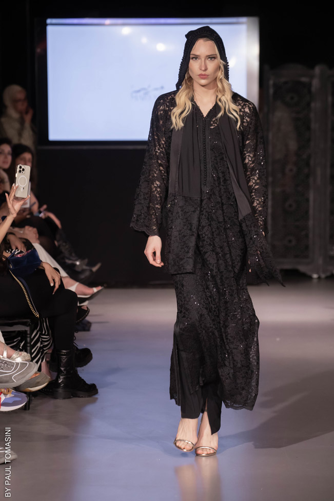 The goal was to offer them clothes reflecting their culture, with a breath of modernity and a very marked fashion side. She developed a range of abayas, using fabrics such as, tweed, denim, cotton jersey, sequins added to other embellishments. It is an extremely elegant and sensitive collection paying homage to femininity with delicacy and respect that knows how to move us. She also presented it at the first “Morocco Fashion Week” last June in Marrakech , and was acclaimed by an international press and a charmed public.