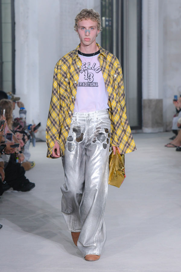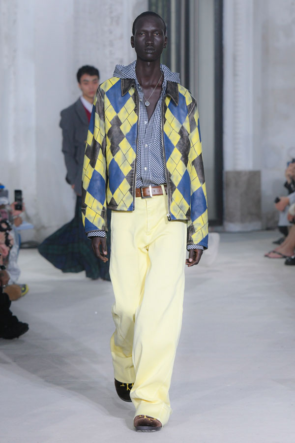 The imagination that questions the existing can weave different stories. The Spring/Summer 2025 collection unveiled on Haussmann Boulevard in Paris is filled with straightforward reinterpretations that directly confront traditional and Ivy styles. With his usual light touch, the designer turned his gaze to the `style’ like mature ivy and the items and outfits that symbolise them. He unraveled navy blazers, marine stripes, and argyle patterns, not only slicing through clichés but also technically transforming forms with smocking and deforming classics with accordion pleats, liberating concepts effortlessly. This playful collection, shedding the abstraction of style, can be seen as a meeting of familiarity and artistic dressing. Shinpei truly envisions the beginning of another tale.