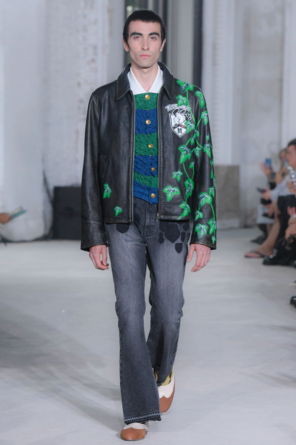 Collaborations, for M A S U, represent a contemporary approach that unleashes his vision into a broader territory. Since the 1950s, incorporating American culture and permeating Japan with American traditional style, the VAN JAC by Kensuke Ishizu, who led Japanese fashion trends, we paid homage to Ishizu by creating a sweatshirt printed with his portrait in the style of a Beethoven sweatshirt (Great Man Sweatshirt), not only with a paper bag-style clutch but also revolutionizing Japanese fashion and paving the way for the future. Following the 24FW collection, VERDY depicts MASU BOYS CLUB lettering and emblem, along with ivy graphics wrapping around the arm, while memorial pants are adorned with words related to VERDY and designer John, a friend who connected them.