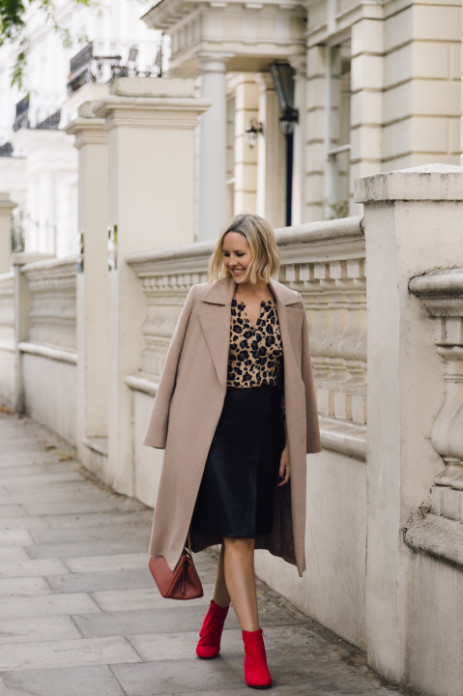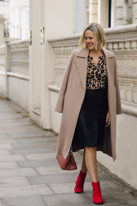 Everyone needs a camel coat in their wardrobe, and this super soft version ticks all the boxes. Try mixing it with leather and a pop of red to make it feel fresh.