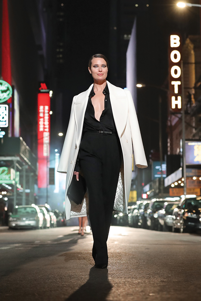The broadcast culminated with the morning’s main attraction: a full runway show, designed and produced by Bureau Betak, that was previously recorded on location throughout the theater district at Sardi’s Restaurant, the Shubert Theatre and along 45th Street. A special musical performance by award-winning singer and songwriter Rufus Wainwright, singing “City Lights,” “New York State of Mind,” and “There’s No Business like Show Business,” set the optimistic tone. The runway film, directed by longtime collaborator Alexandre de Betak and produced by Bureau Future, shined a light on the unique glamour and energy of Broadway, one of New York City’s most beloved industries and among the hardest hit by the pandemic. The runway show video showcases the full Fall/Winter 2021 Michael Kors Collection, seen on models Naomi Campbell, Helena Christensen, Carolyn Murphy, Ashley Graham, Shalom Harlow, Bella Hadid, Alek Wek and more.