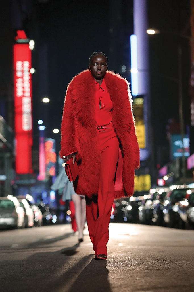 “For my 40th anniversary collection, I was really thinking about the joy in getting dressed up and stepping out for a night on the town,” says Michael Kors. “Whether you’re going to the office, having a casual dinner in the neighborhood or are in fact ready to go to a party again, this collection is all about making every moment a special occasion and feeling confident, glamorous and upbeat. There’s a sense of timelessness and big-city optimism that has been a linchpin of Michael Kors since the very beginning—a yin-andyang balance between opulence and simplicity, something that’s laid-back and at the same time luxurious.”