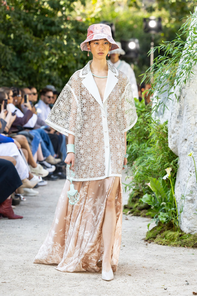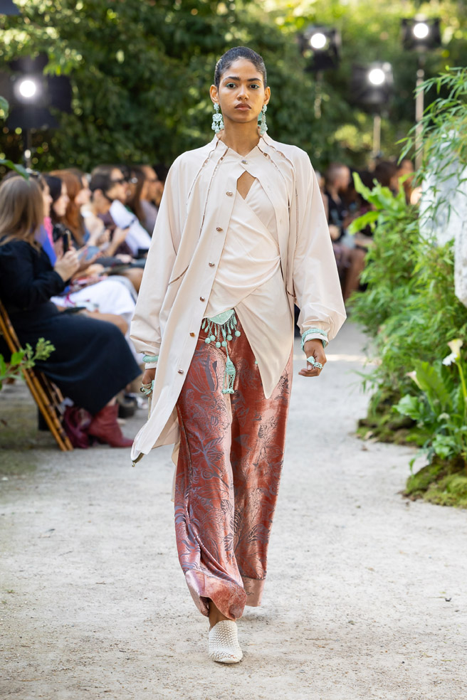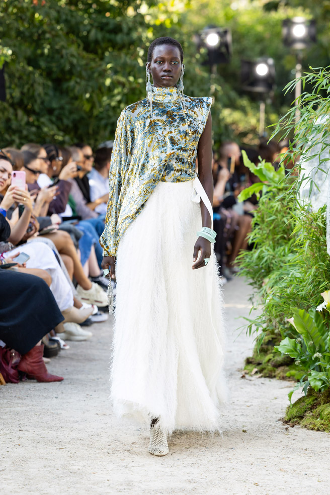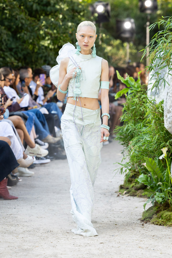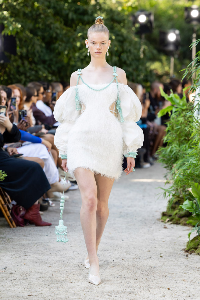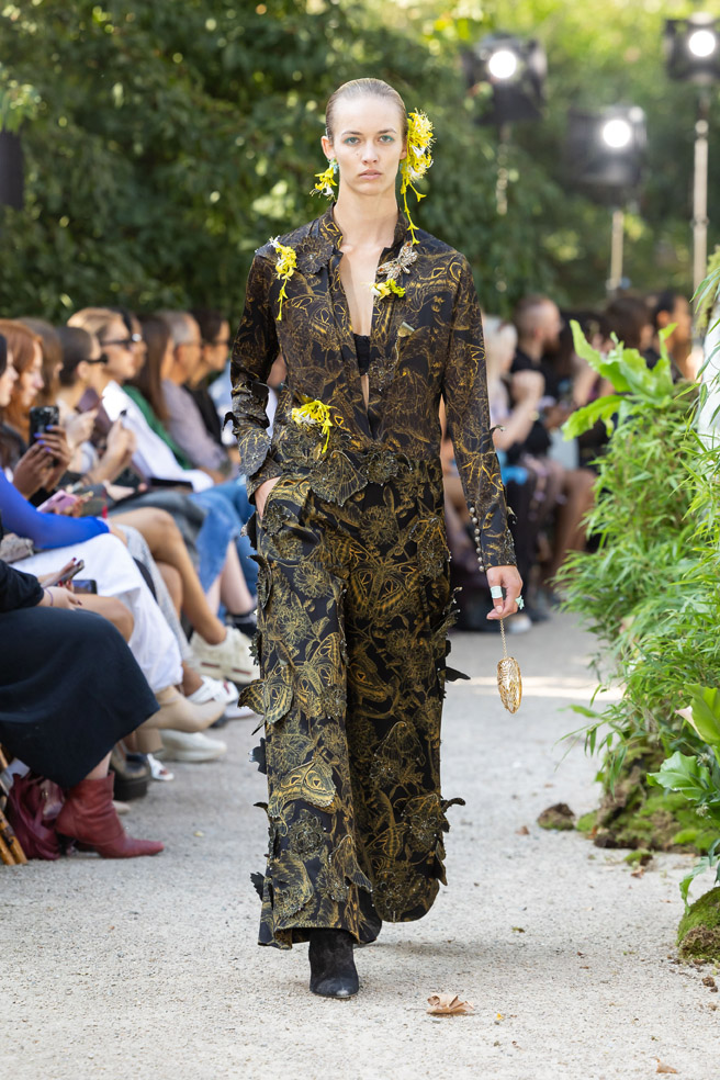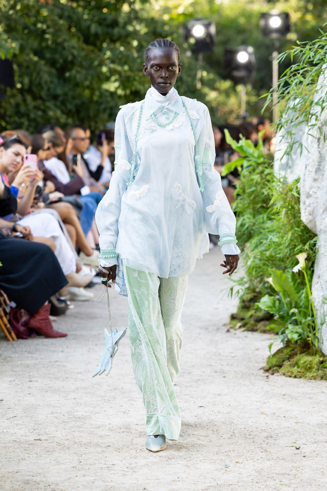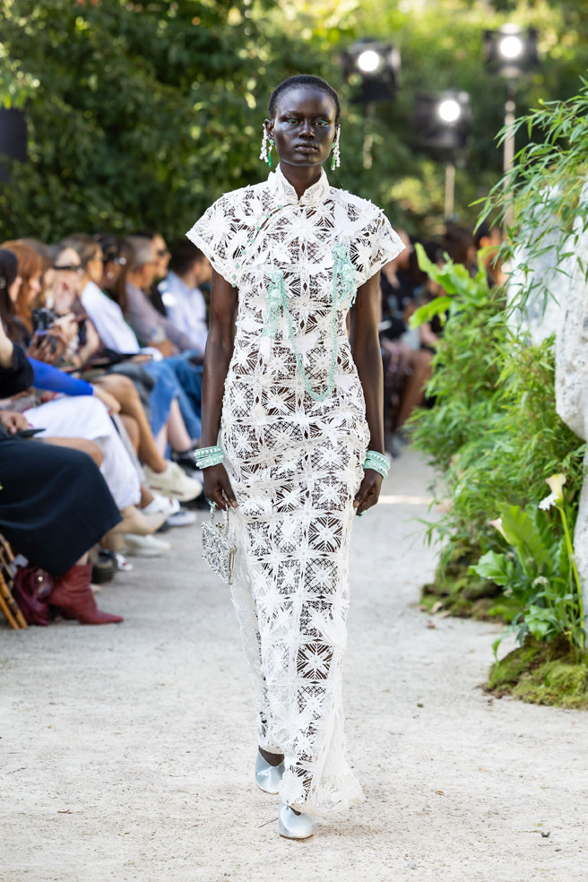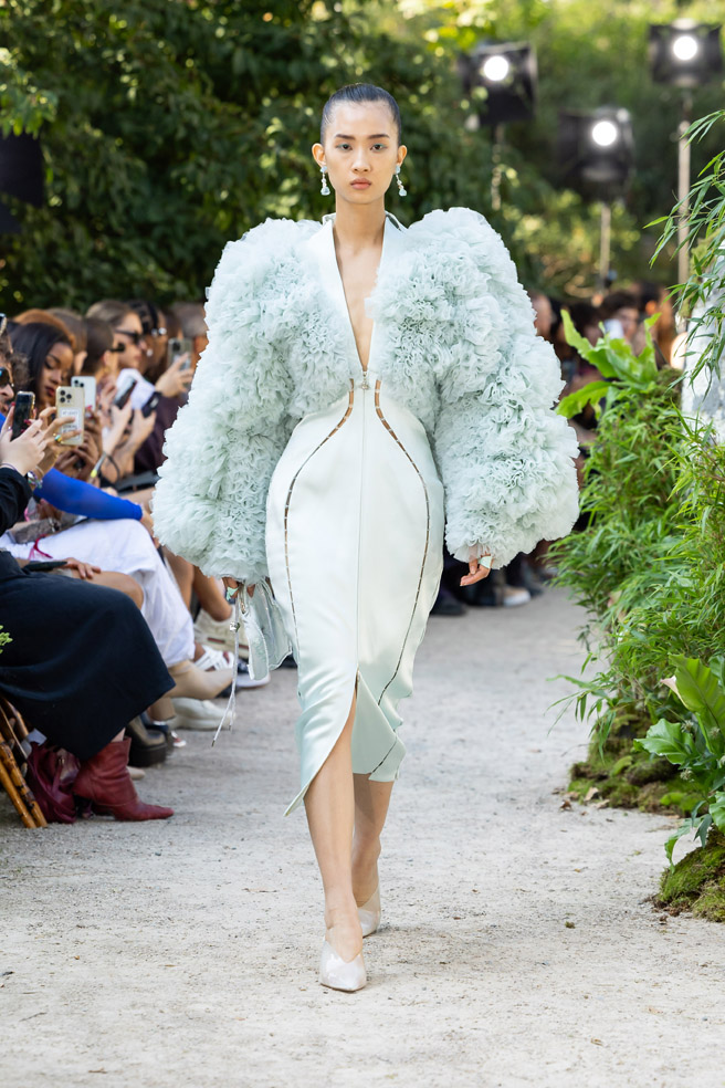 In Zhang’s signature maximalist style, the collection plays with textures that flow like poetry, creating a dance of light and shadow that adds depth and dimension to each ensemble. Layering becomes a metaphor for the layers of healing and rejuvenation that one can experience through fashion.