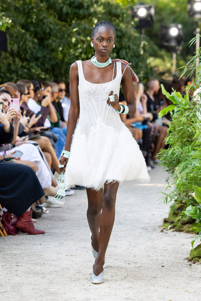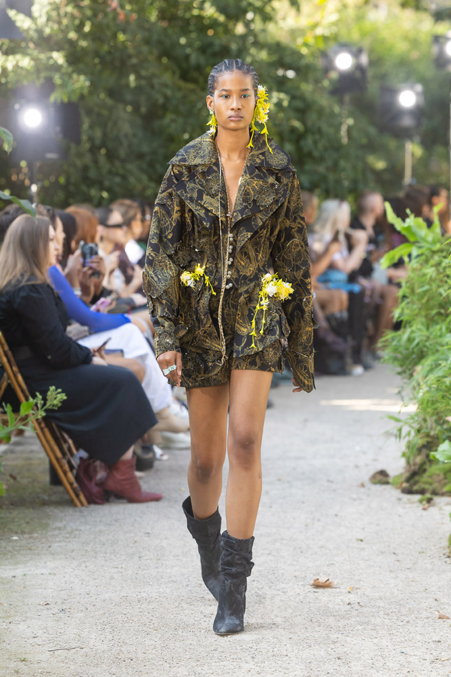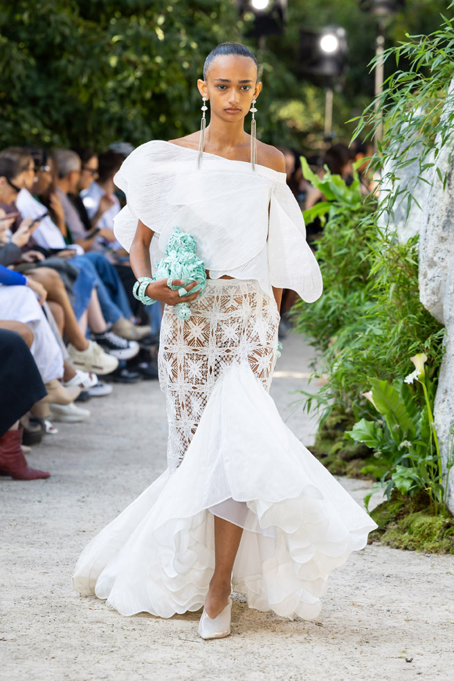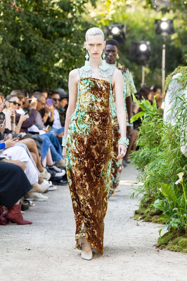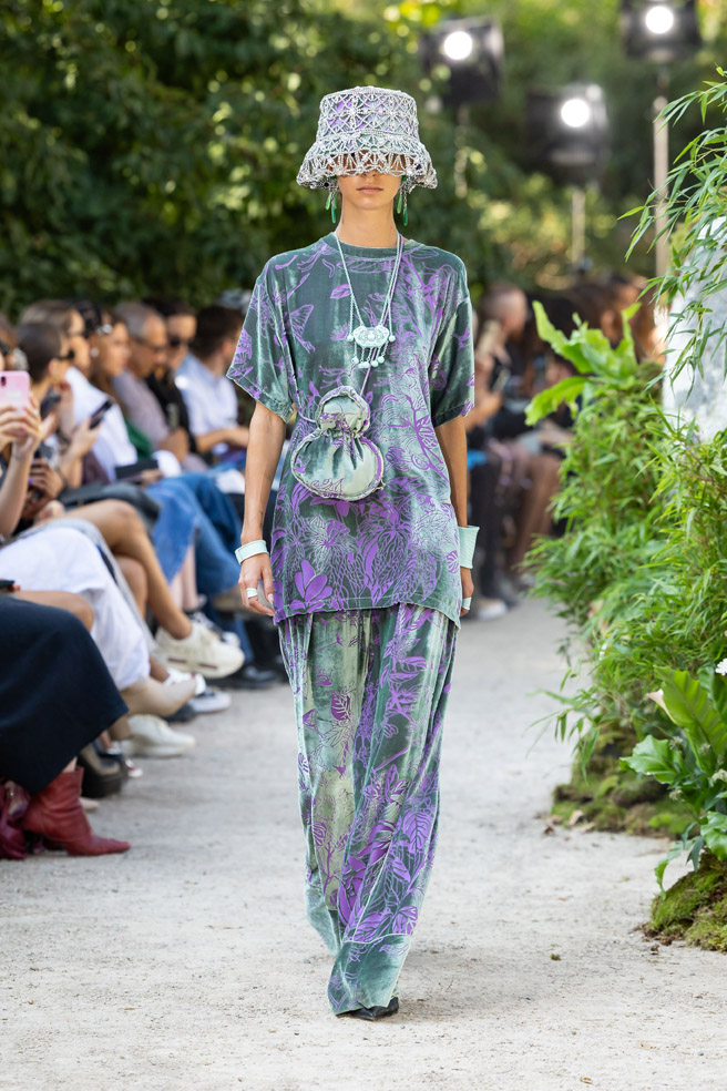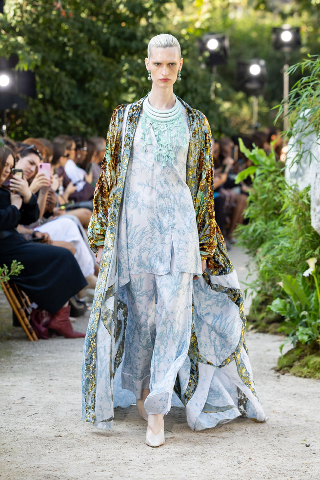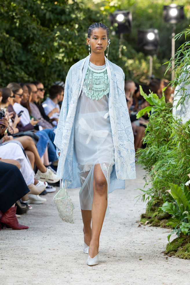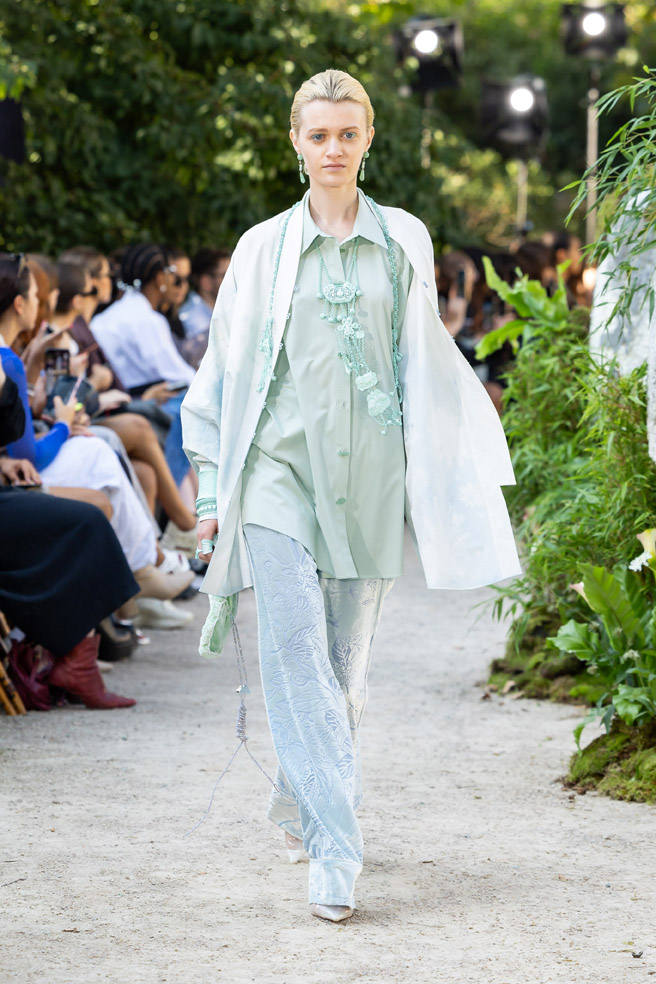 In Zhang’s signature maximalist style, the collection plays with textures that flow like poetry, creating a dance of light and shadow that adds depth and dimension to each ensemble. Layering becomes a metaphor for the layers of healing and rejuvenation that one can experience through fashion.