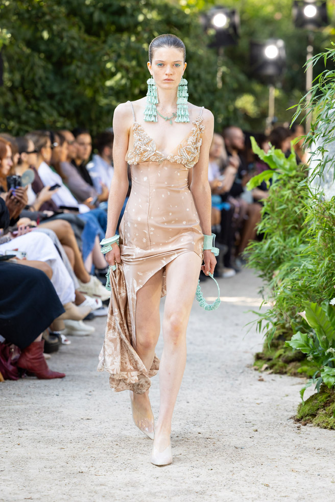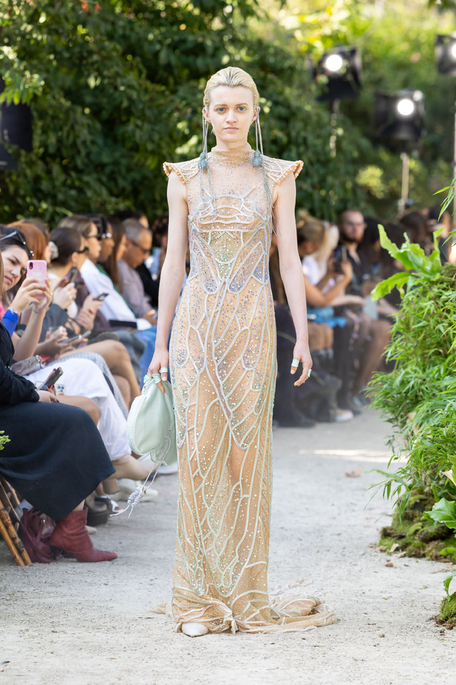 Drawing profound inspiration from her heritage, Zhang embarks on a captivating journey through the annals of traditional Chinese medicine. Here, 24 different healing herbs take center stage, each meticulously crafted into sophisticated and romantic designs, blurring the lines between fashion and cultural expression.
