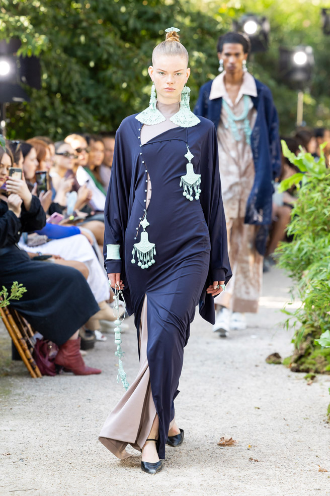 MITHRIDATE’s Spring/Summer 2024 collection transcends the realm of fashion, offering a transformative experience that merges cultural heritage with contemporary artistry. Demon Zhang’s vision is not merely a collection of garments; it’s an invitation to embark on a journey of self-discovery, healing, and renewal. This is fashion as a form of therapy, where each piece becomes a conduit for inner peace and harmony.