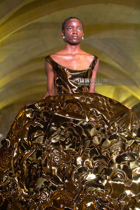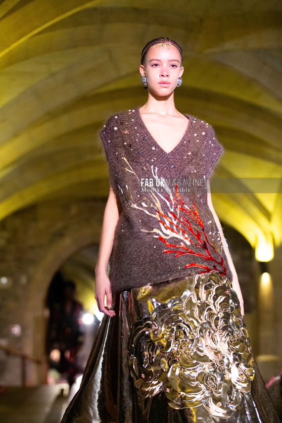 Mithridate has unveiled a stunning collection that marries opulence with contemporary flair. Luxurious textures like thick velvets and metallic coatings blend seamlessly with bejewelled embroidery, leather weaving, and intricate hand-cut flowers. Chain hardware and detailed rhinestone embellishments add a touch of edgy sophistication. The pieces showcase a wonderful collection with rich shades of crimson, coral pink, marine, and gold.