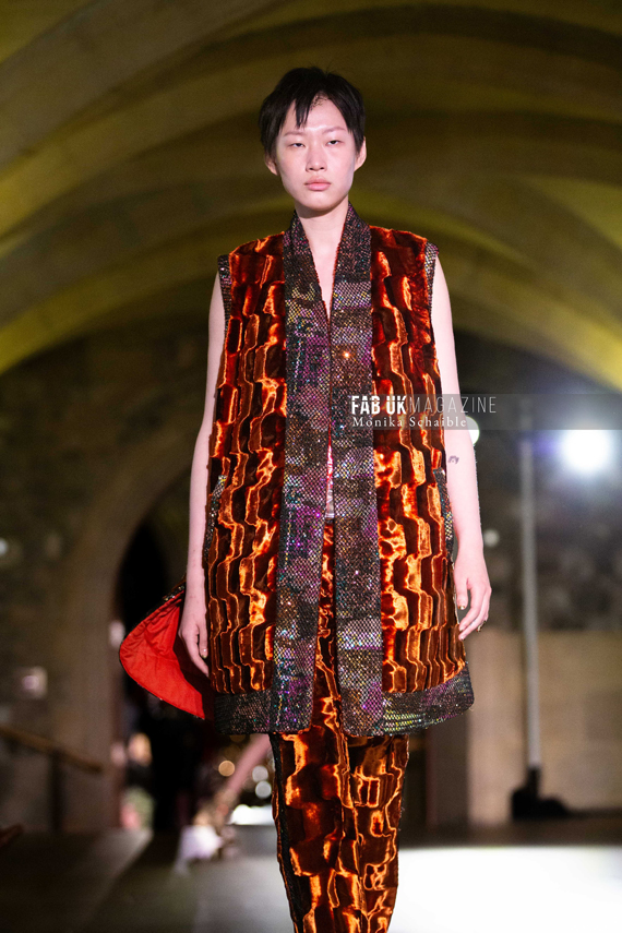 Zhang’s vision transforms the runway into a captivating symphony of elegance, where each piece tells a story, inviting us to explore the beauty woven into the fabric of our existence. “This collection explores themes of time, identity, and fate,” Demon Zhang explains. “Throughout our lives, we often believe in destiny, yet during challenging moments, we find ourselves wishing for a different reality. It is only after overcoming these tough times that we are presented with an opportunity for a new beginning.”
