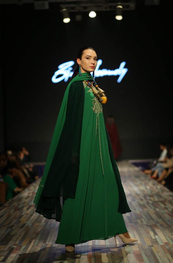 NGUYEN NGOC TRANG ANH mostly wore leather in dark colours to represent her theme. The fabrics were attractive and gave off an edgy sort of aura. Edgy was definitely one way to describe this look but there was also a tint of modern styled classiness in the outfit.