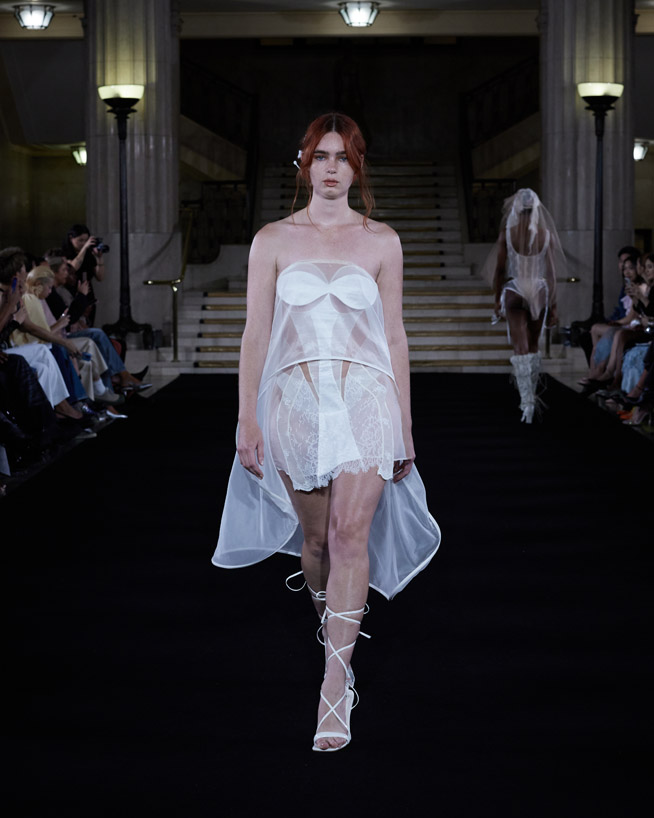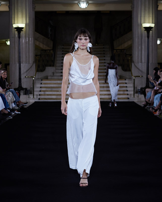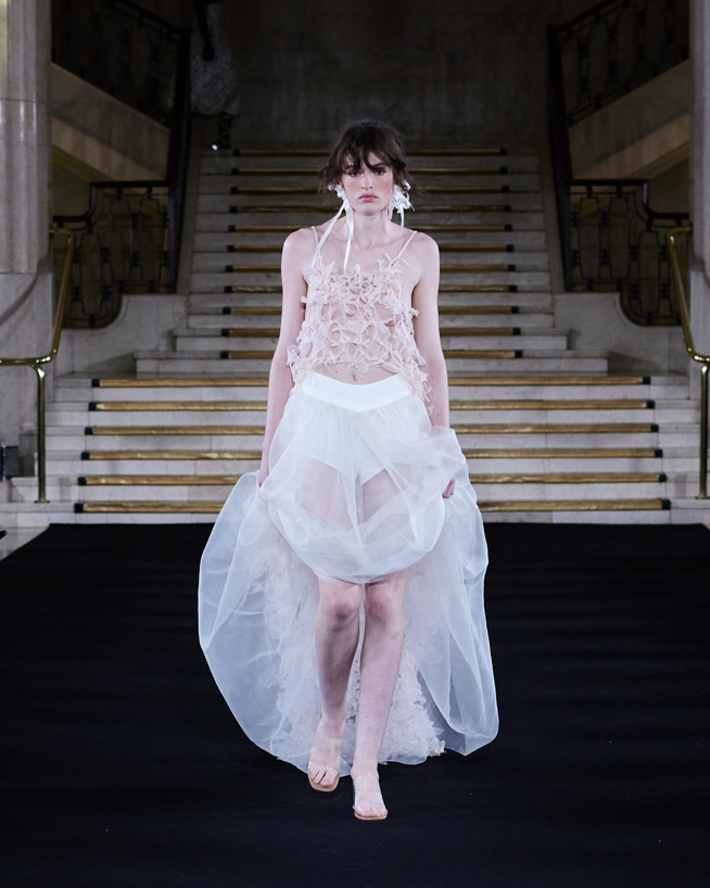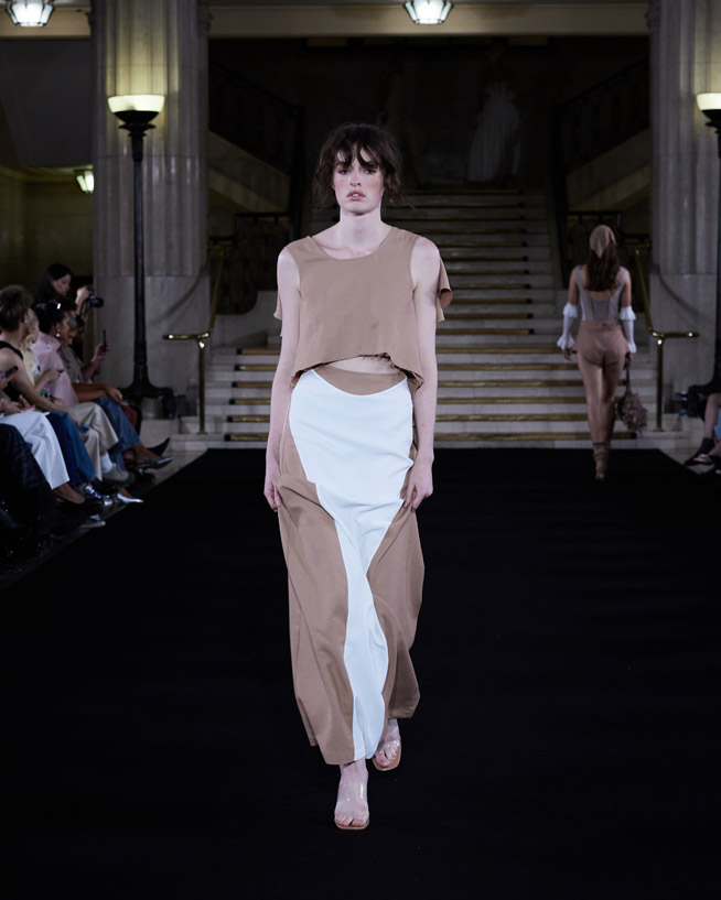 The MurMur: r.l.e’s SS24 collection was presented last Monday on London Fashion Week, where it took center stage and captured the attention of fashion enthusiasts and critics alike. The runway dazzled with an exquisite display that left the audience in sheer wonderment—a true sartorial spectacle that saw the designer’s latest collection shine resplendently. This sartorial masterpiece delved deep into the intricate interplay between individual consciousness and the deeply etched stereotypes and conventional norms of our contemporary society, capturing an aura that was both subtle and profoundly evocative.