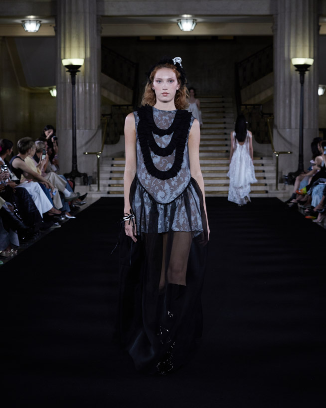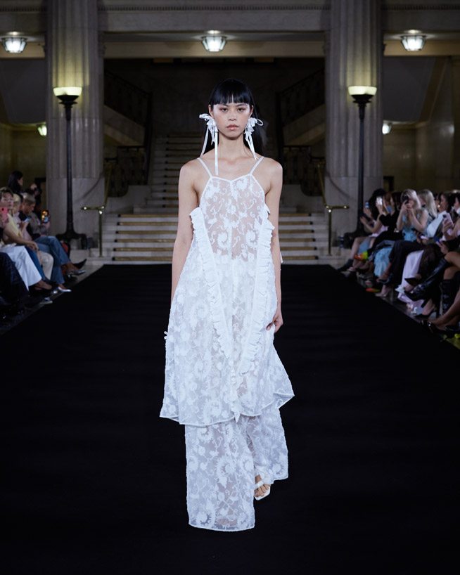 Further adding to the collection’s depth and richness was the designer’s embrace of nature’s elegance. Lilies, butterflies, and lycoris radiata featured prominently, seamlessly woven into soft silhouettes and earth-toned colour palettes. Each garment became a canvas, a testament to the delicate yet potent expression of individuality, an artistic challenge to established definitions of beauty and aesthetics.