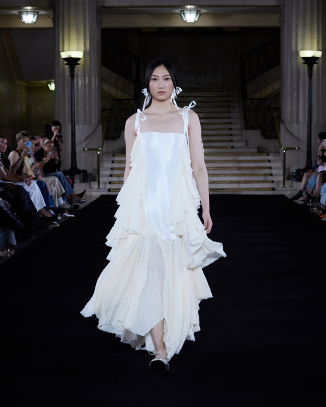 The MurMur: r.l.e’s SS24 collection was presented last Monday on London Fashion Week, where it took center stage and captured the attention of fashion enthusiasts and critics alike. The runway dazzled with an exquisite display that left the audience in sheer wonderment—a true sartorial spectacle that saw the designer’s latest collection shine resplendently. This sartorial masterpiece delved deep into the intricate interplay between individual consciousness and the deeply etched stereotypes and conventional norms of our contemporary society, capturing an aura that was both subtle and profoundly evocative.