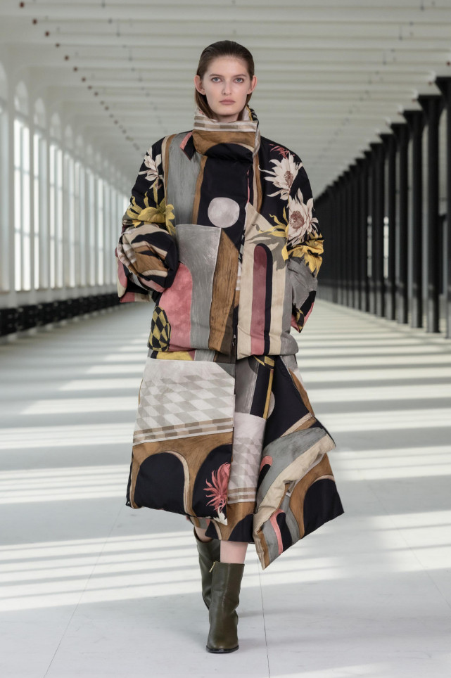 The strong influence of “beyond realism” is held throughout the whole collection with surprising coats and blazers, unexpected materials, prints, or color selection. It excels in festive shirts, dresses, and skirts that are vibrant and diverse. All the exuberant pieces flawlessly combine with essential pieces such as classic trench coats, tailored jackets, and pants for everyday use.