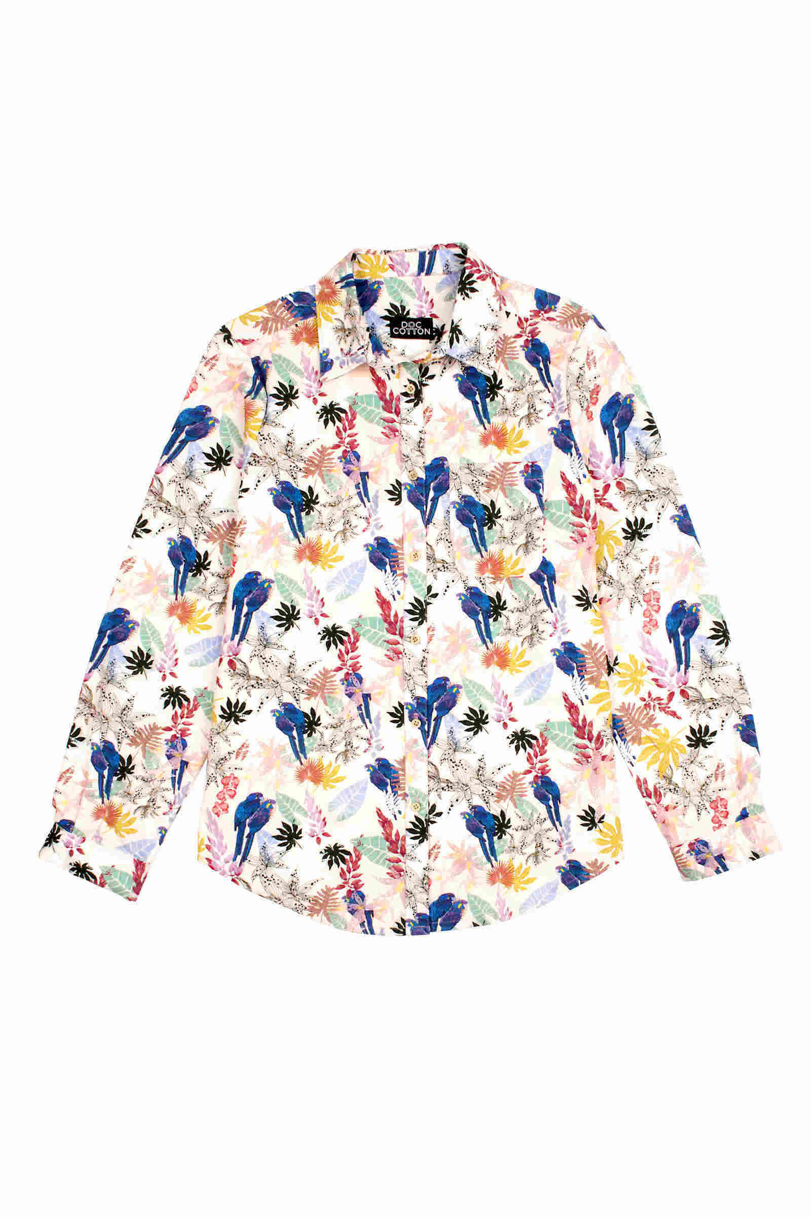 With 11 different cuts and items currently available for men and women, including t-shirts, classic shirts, trousers, shorts, skirts and dresses, each garment starts-off as a blank canvas before unique prints are digitally printed, a process which eliminates any nasty toxic trails caused by dyeing.