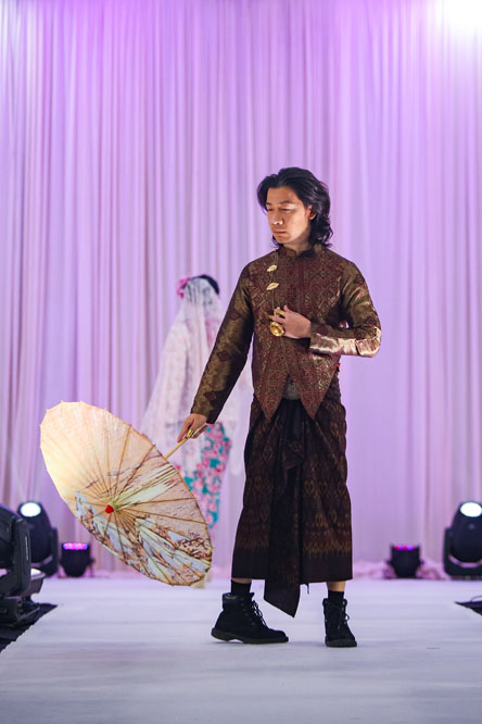 At the recent Sarawak Eco Fashion Gala held in Kuching Sarawak Malaysia, Joh presented his “Sarong Kebaya with a Twist of Borneo”. Partnering with the strong interests of the Peranakan community in Kuching, John blends Malaysian batik, Sarawakian beadwork, and antique Iban textiles, aiming to ignite a new fashion trend in the region.