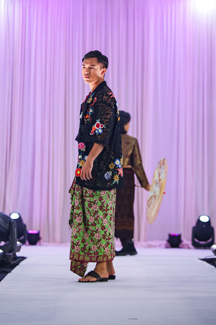 At the recent Sarawak Eco Fashion Gala held in Kuching Sarawak Malaysia, Joh presented his “Sarong Kebaya with a Twist of Borneo”. Partnering with the strong interests of the Peranakan community in Kuching, John blends Malaysian batik, Sarawakian beadwork, and antique Iban textiles, aiming to ignite a new fashion trend in the region.