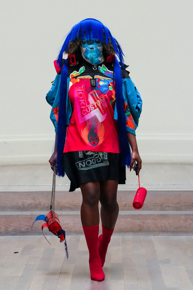 Noki and the NESTT (Noki Education of Sustainable Textiles and Technology) return to London Fashion Week to prove sustainability can be vivid, empowering, and liberating. Noki was, is, and always has been, the original anarchist to fashion waste and sustainability issues, born as a reaction to the fast-fashion movement. His upcycled “franken-fashion” collage style gave rise to the Dr Noki moniker – revolutionary then, revolutionary now. As we sleepwalk ever further towards the edge of environmental, economic, and social collapse – Noki’s fearless and uncompromising message and anti-establishment narrative, conceived as a critique on capitalism and challenge to consumerism, has never been more poignant or more powerful.