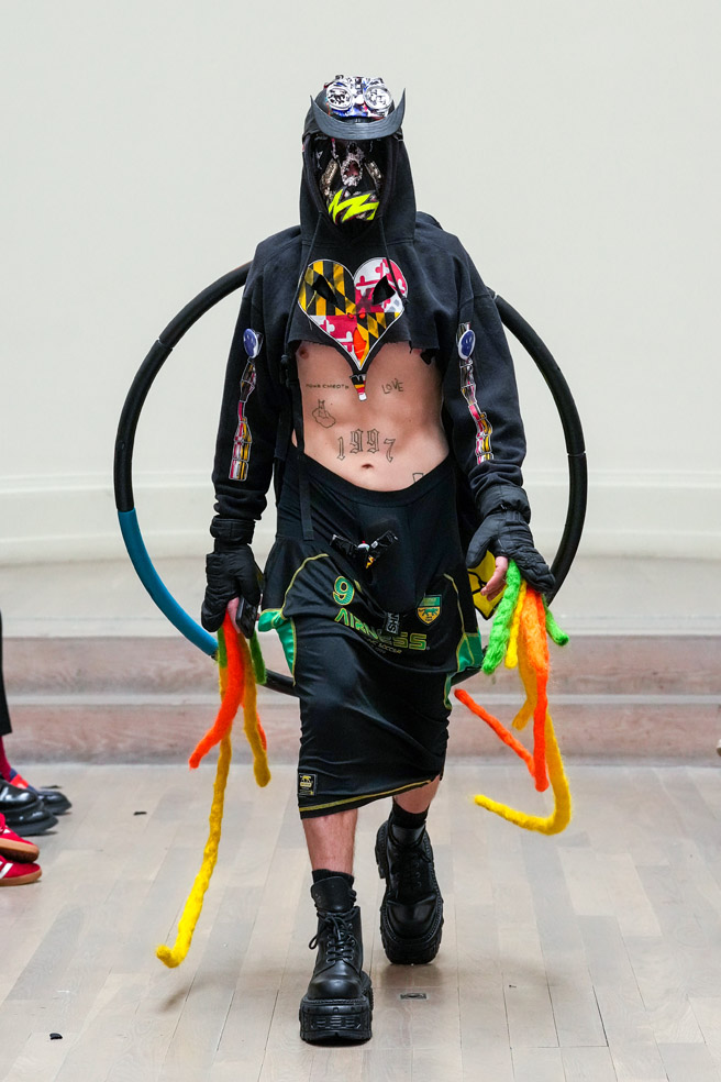 Noki and the NESTT (Noki Education of Sustainable Textiles and Technology) return to London Fashion Week to prove sustainability can be vivid, empowering, and liberating. Noki was, is, and always has been, the original anarchist to fashion waste and sustainability issues, born as a reaction to the fast-fashion movement. His upcycled “franken-fashion” collage style gave rise to the Dr Noki moniker – revolutionary then, revolutionary now. As we sleepwalk ever further towards the edge of environmental, economic, and social collapse – Noki’s fearless and uncompromising message and anti-establishment narrative, conceived as a critique on capitalism and challenge to consumerism, has never been more poignant or more powerful.