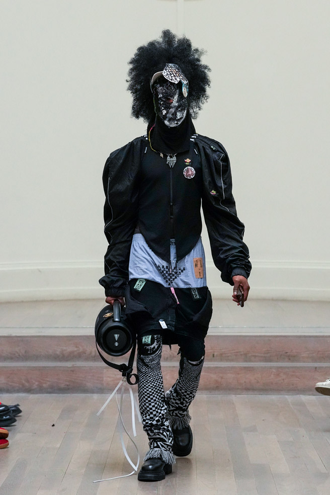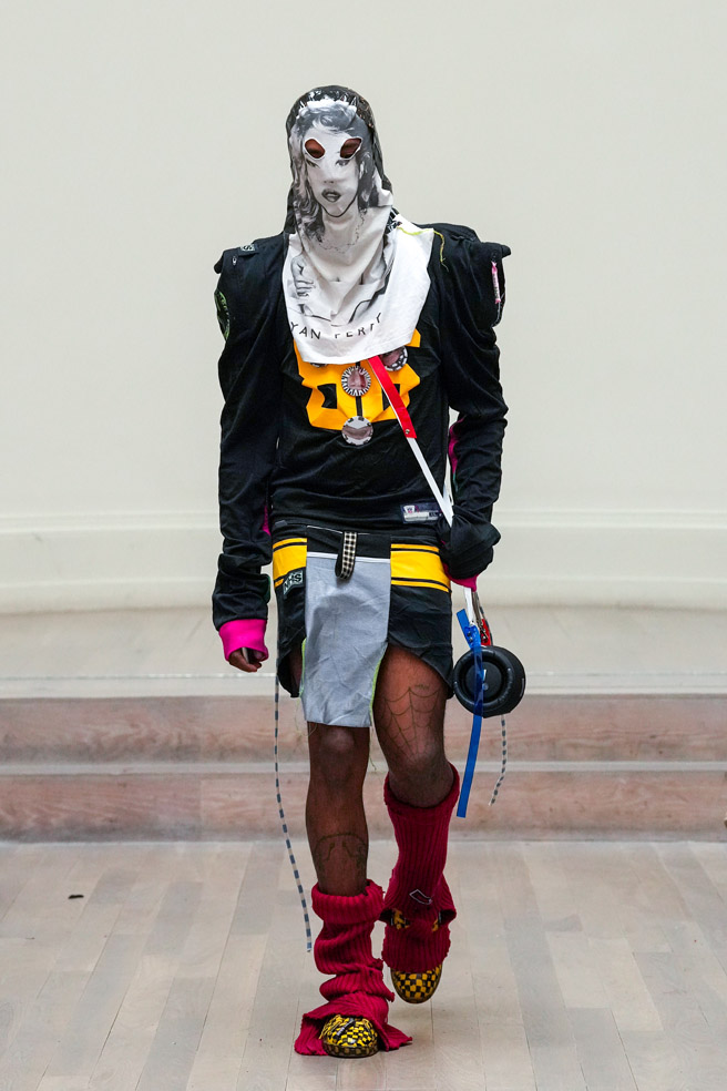 The 22-4-1 Evolutions is a collection of 22 custom builds from a shared source and blueprint. The original 2-4-1 debuted at the NESTT SS23 show, a reveal that showcased 2 looks in 1, and becomes the opening look and inception of the collection that follows. Noki has transformed this concept into a full collection of original creations standing as testament to his desire to re-use, re-purpose, re-imagine, and revolutionize how we view the fashion system. As always, everything seen on the catwalk is crafted from apparel destined for landfill, salvaged, saved, and reborn into dynamic new fashion through signature cut-and-splice clothing-collage and media mash-ups.