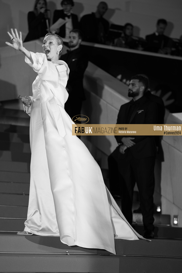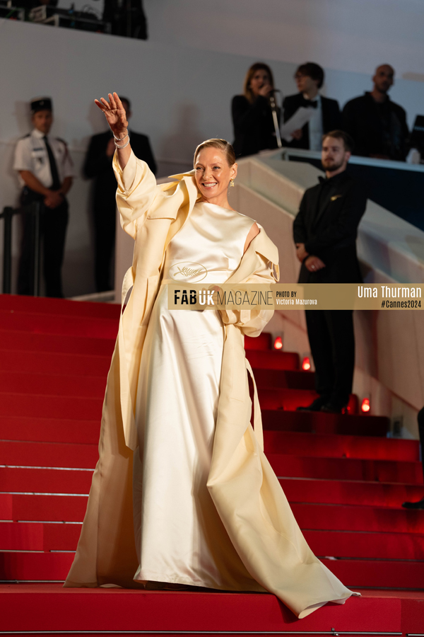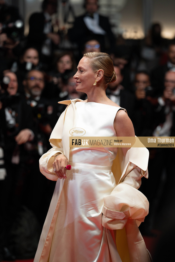 Uma Thurman attends the “Oh, Canada” red carpet during The 77th Annual Cannes Film Festival at Palais des Festivals on May 17, 2024 in Cannes, France. (Photo by Victoria Mazurova/FABUK)
