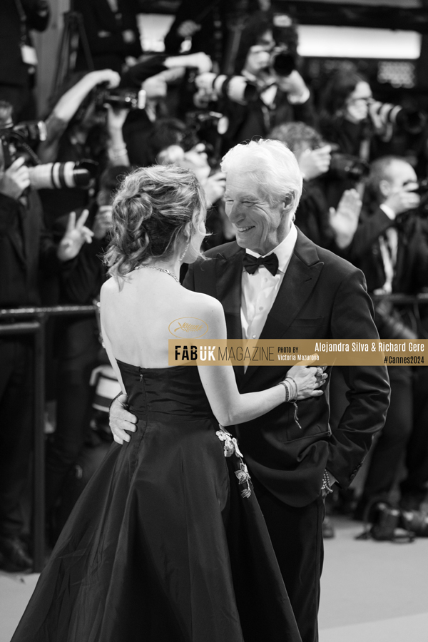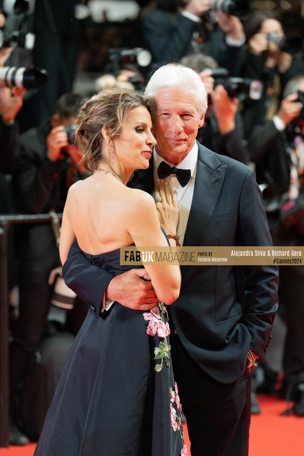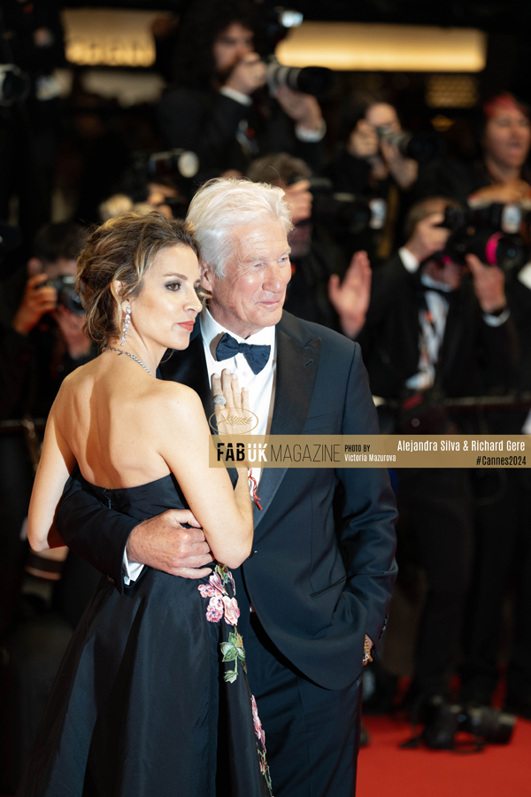Richard Gere & Alejandra Silva attends the “Oh, Canada” red carpet during The 77th Annual Cannes Film Festival at Palais des Festivals on May 17, 2024 in Cannes, France. (Photo by Victoria Mazurova/FABUK)