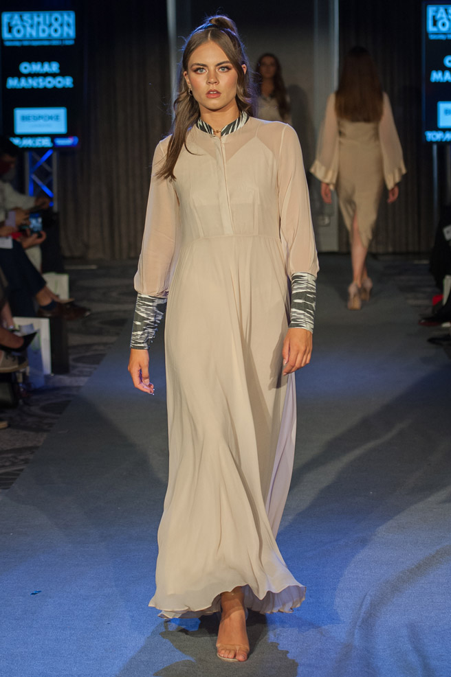 This year, Omar Mansoor’s collection is presented physically at The Grand Connaught Rooms, London.
