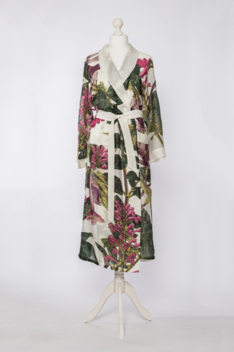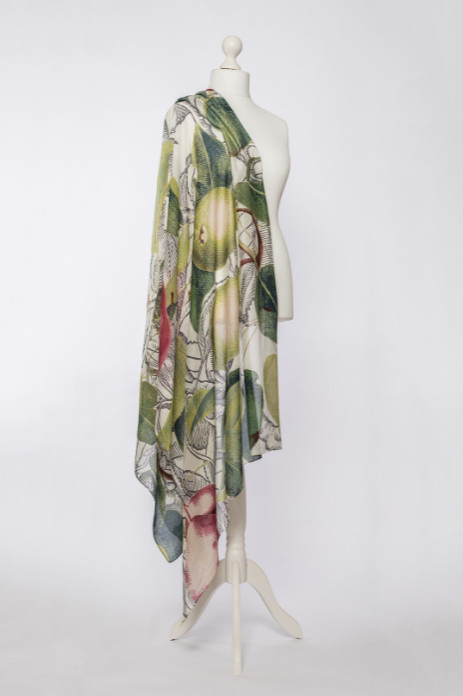 With access to the incredible archive of drawings at Kew and taking inspiration from its rich heritage and the awe-inspiring botanicals, One Hundred Stars have designed a collection of ornately decorated scarves, kimonos, gowns and pyjamas, gloriously printed with Passion Flowers, Apples and Pears and Magnolia.