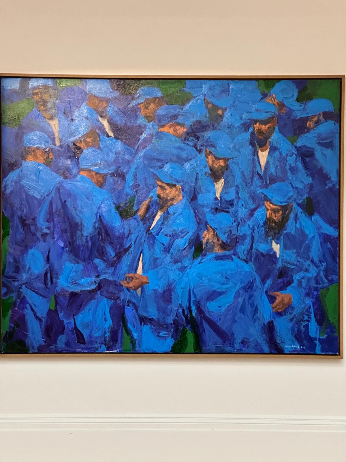 Then there was Servan Baran’s electric blue masterpiece, which practically lit up the room. This painting was bold and audacious, demanding attention. It was clear this one would be a hit among the bidders, and I could feel the energy in the room shift as people started to strategize. You know the kind of energy—where you can almost hear the calculator in everyone’s head, ticking away as they figure out just how high they’re willing to go.