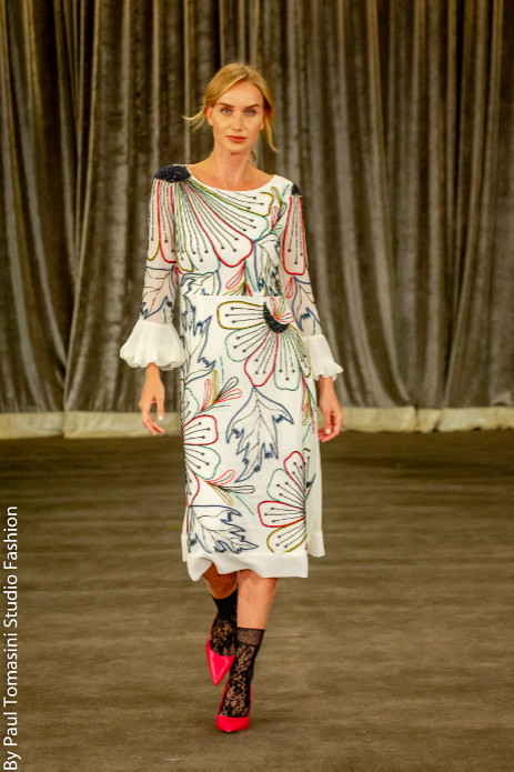 Many clients claim it is the only boutique in London where they can come and have something designed just for them, for any occasion, which fits like a glove and flatters their figure. Kruszynska gowns are usually fitted with a corset, often using hand embroidered fabrics made on the premises, so that the result is a beautifully fitted and flattering piece. As described by the Sunday Times: ‘The ultimate party dress.’