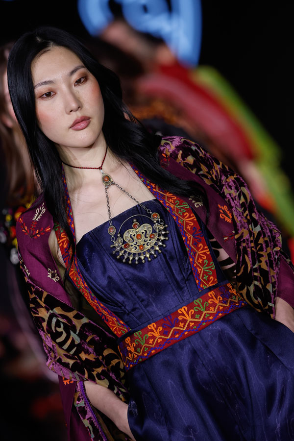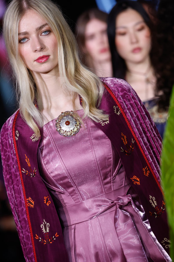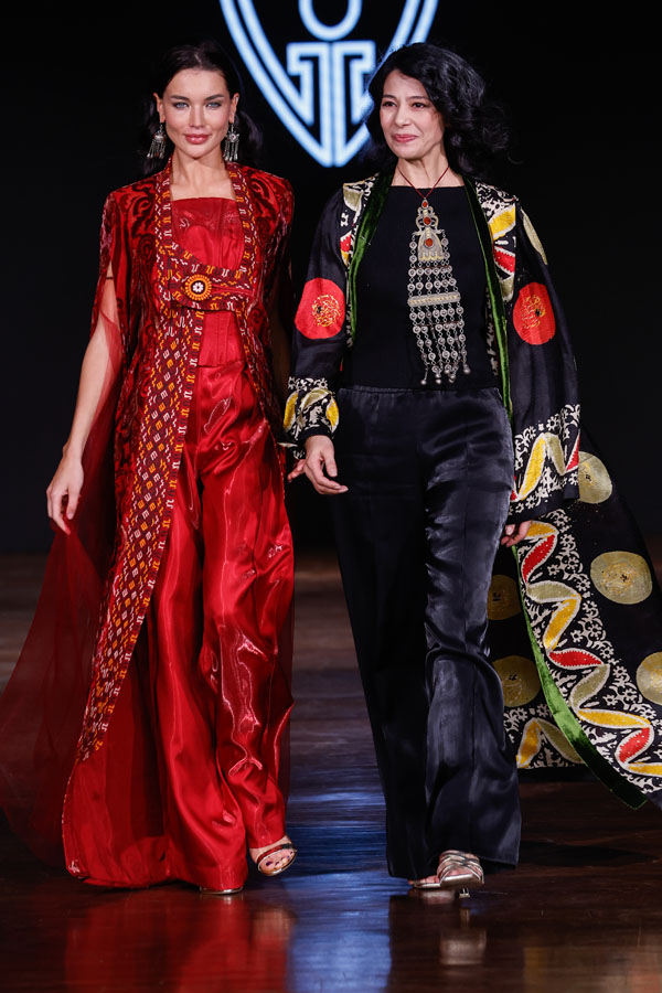 Turkmen designer Göwher Pirkulyyeva-Gouvernet, who trained in Paris and St. Petersburg, showcased a collection that masterfully merged Turkmen textile traditions with Parisian sophistication. Having previously presented her work at Paris Fashion Week, Tangier Fashion Week, and Ana Arabia in Riyadh, she continues to champion cultural fusion through fashion.