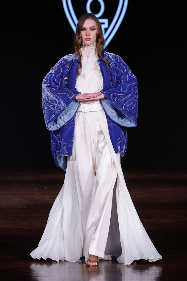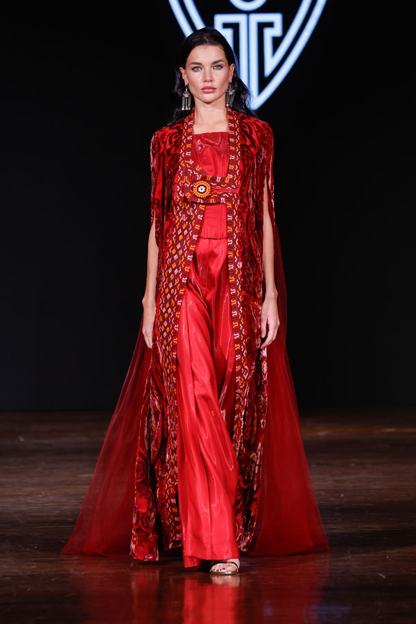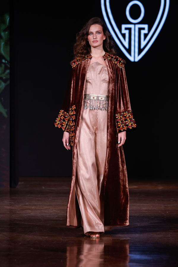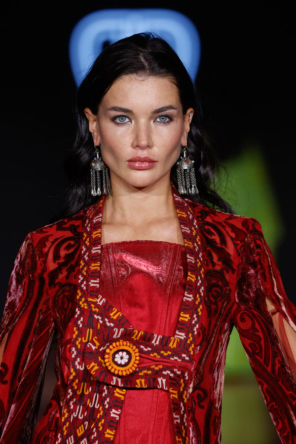 Turkmen designer Göwher Pirkulyyeva-Gouvernet, who trained in Paris and St. Petersburg, showcased a collection that masterfully merged Turkmen textile traditions with Parisian sophistication. Having previously presented her work at Paris Fashion Week, Tangier Fashion Week, and Ana Arabia in Riyadh, she continues to champion cultural fusion through fashion.