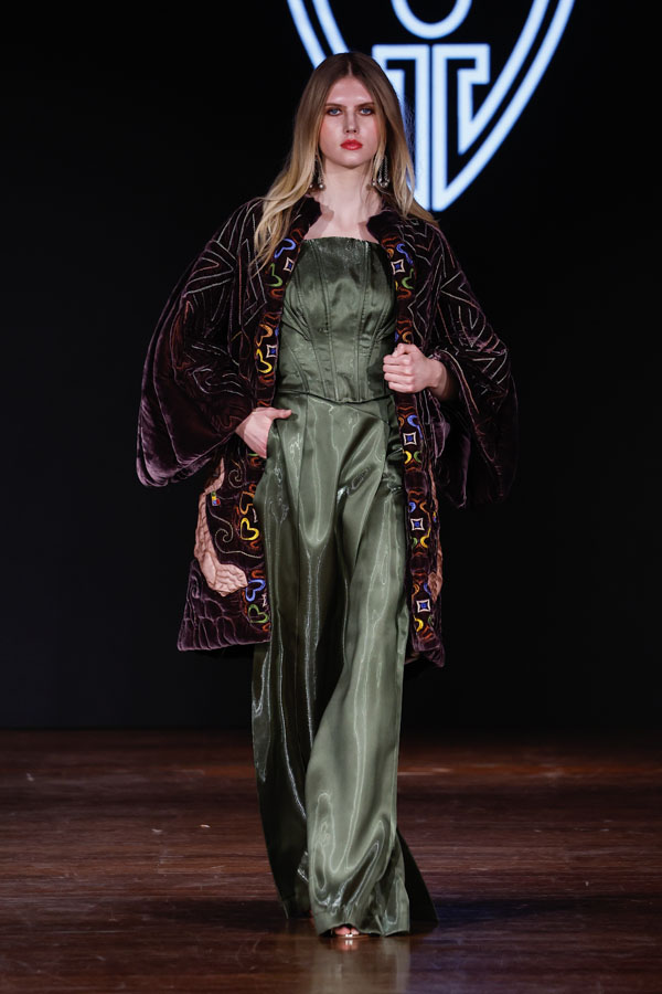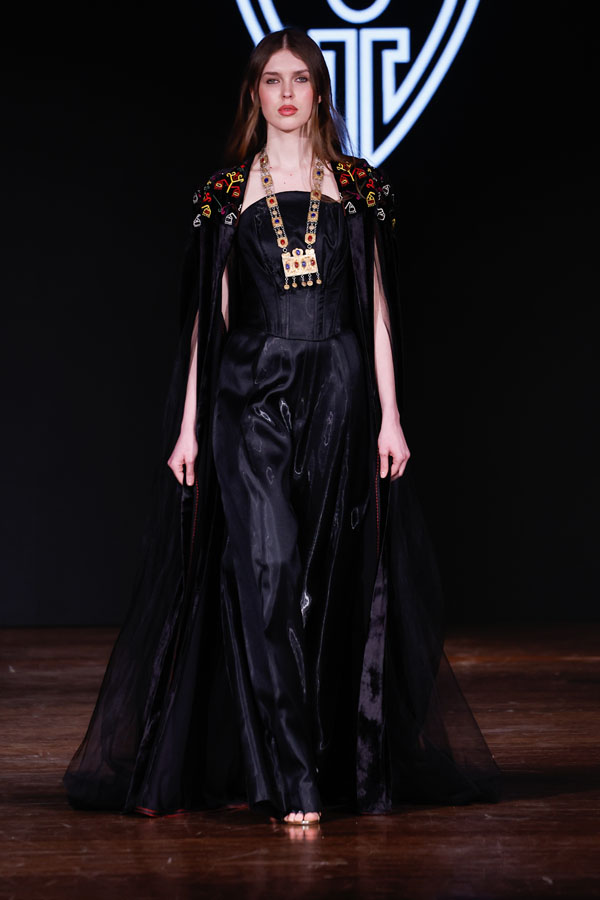 Designer Sheikha Tufool bint Abdullah bin Ahmed bin Bakhit Al Shanfari presented the second part of the Empire collection, which pays homage to Oman’s rich history, architecture, and artistic craftsmanship. Featuring gold and silver tones with intricate engravings, the collection celebrated the nation’s cultural identity while offering a contemporary touch for today’s fashion-forward women.