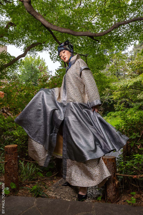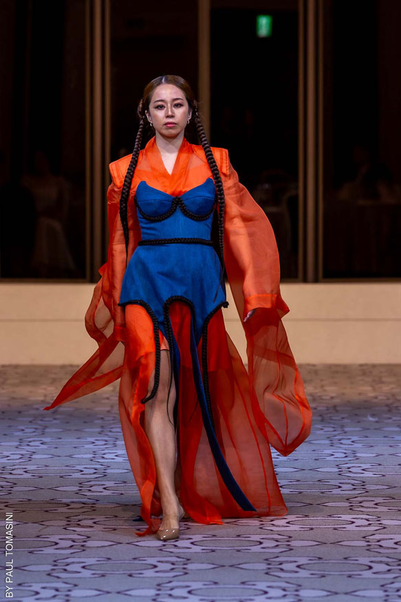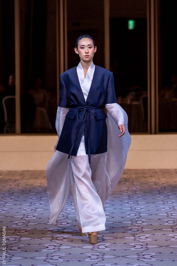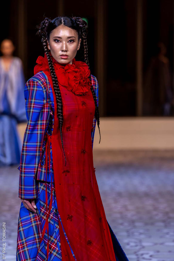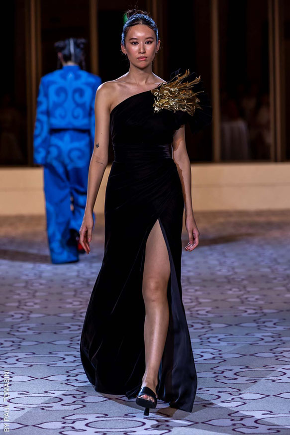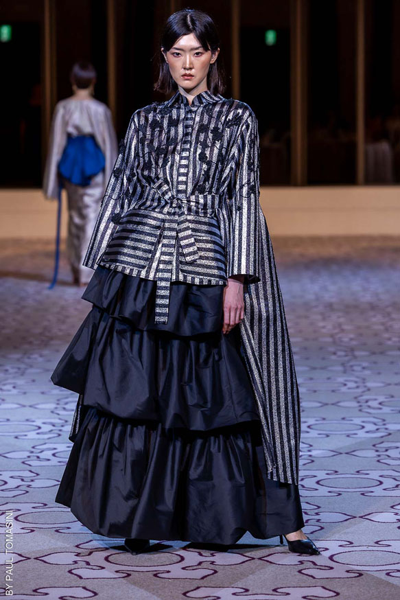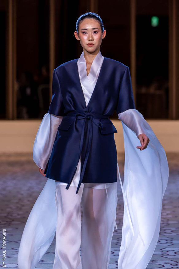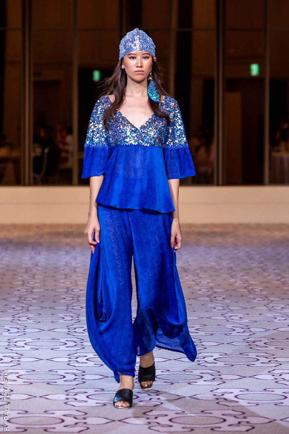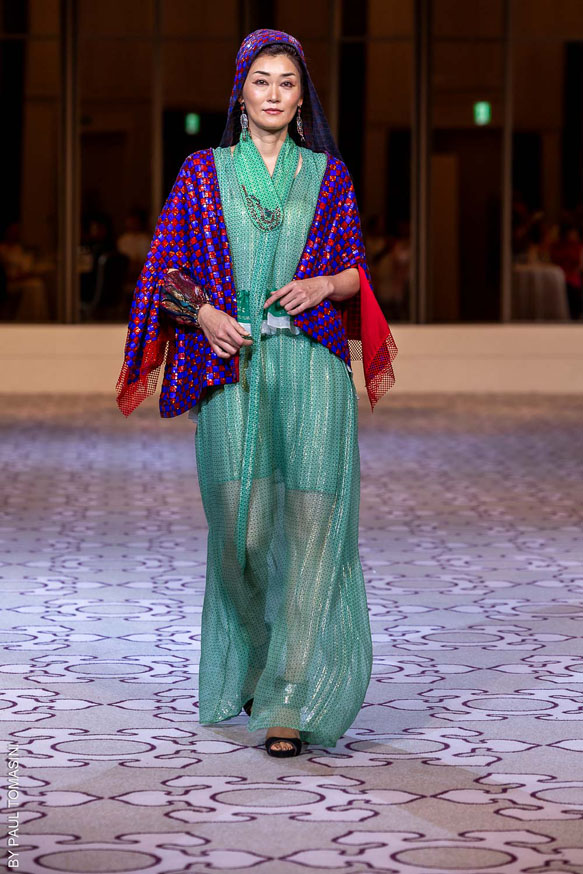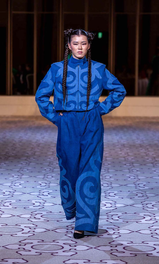 Nazym ARUNAZ presented a collection that merges Kazakh and Japanese culture with Japanese cuts and reminders of the ancestral culture of Kazakhstan.
