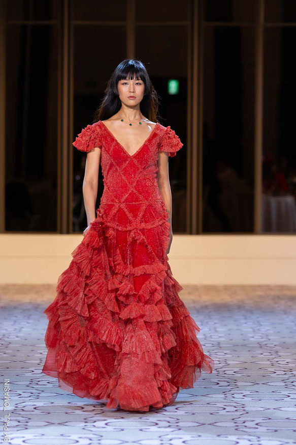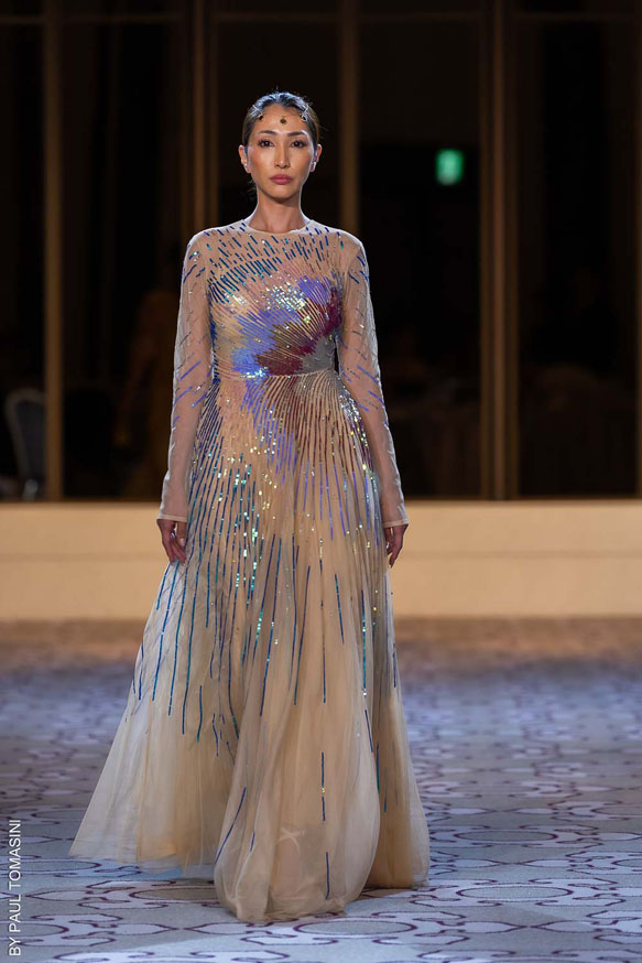 After Malaysia, the Oriental Fashion Show stopped in Japan on October 18, 2024. This unmissable Oriental Fashion Show brought together exceptional designers from Kazakhstan (Nazym Arunaz, Hanum Aidash), Morocco (Hind Berrada), France (Christophe Guillarmé) and Japan (Yuna Hattori) … A true intercultural dialogue was established, celebrating the diversity of traditions around the world. The event highlighted the ancestral know-how of couture while offering a contemporary and innovative vision of fashion.