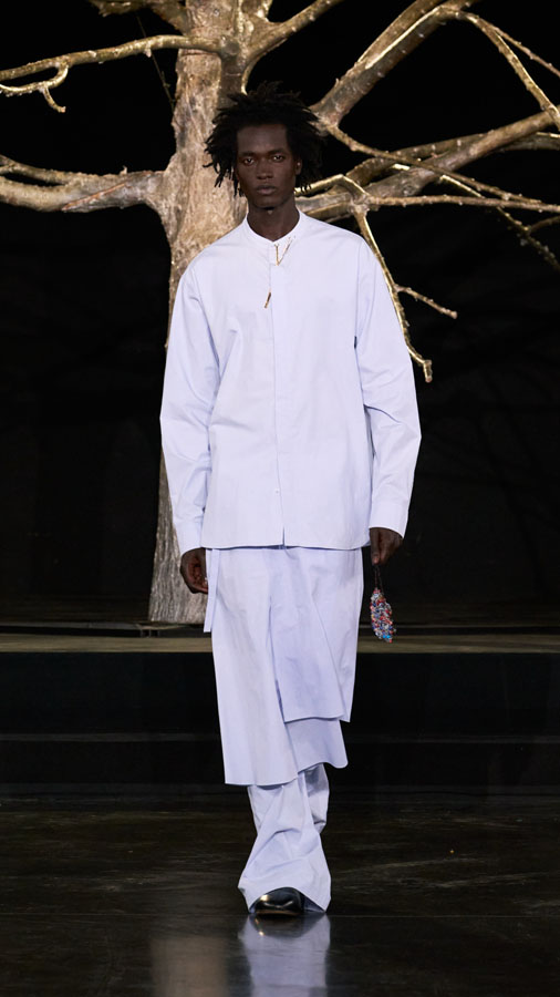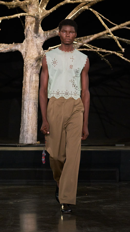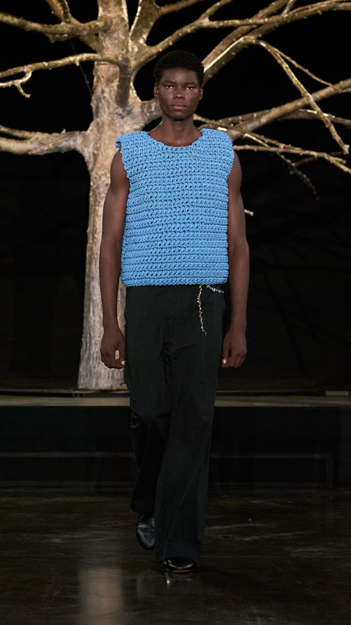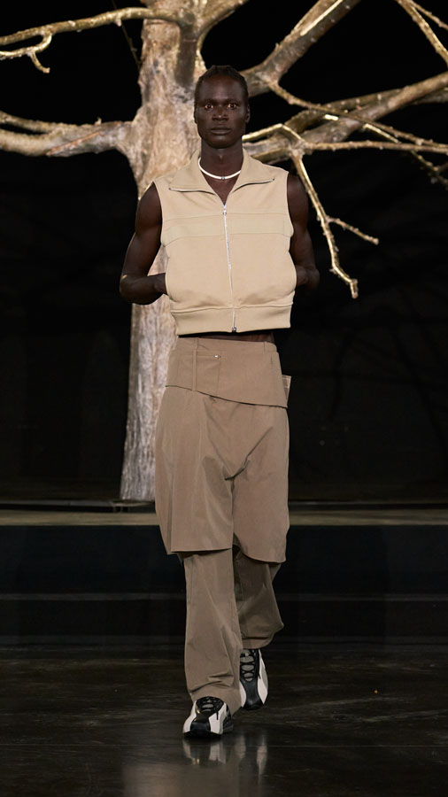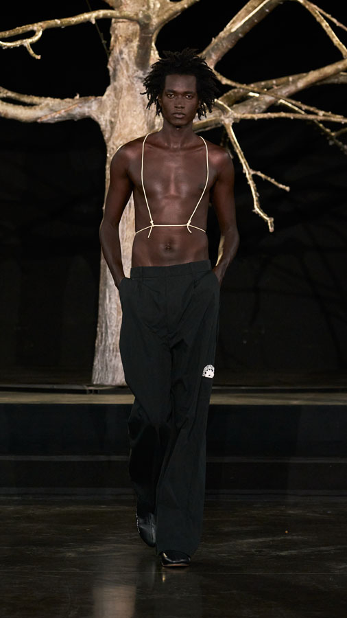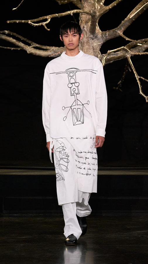 The collection further includes collaborations with Oakley, Levi’s, and Puma, reinforcing the dialogue between independent design and global industry leaders. This union of forces reflects Pedro Andrade and Paula Kim’s vision for a new kind of fashion — not only to be worn, but to awaken collective consciousness, revive cultural roots, and propose paths for the future.