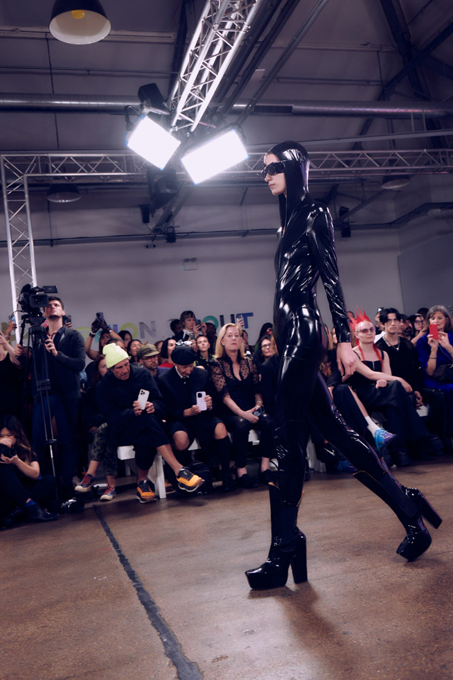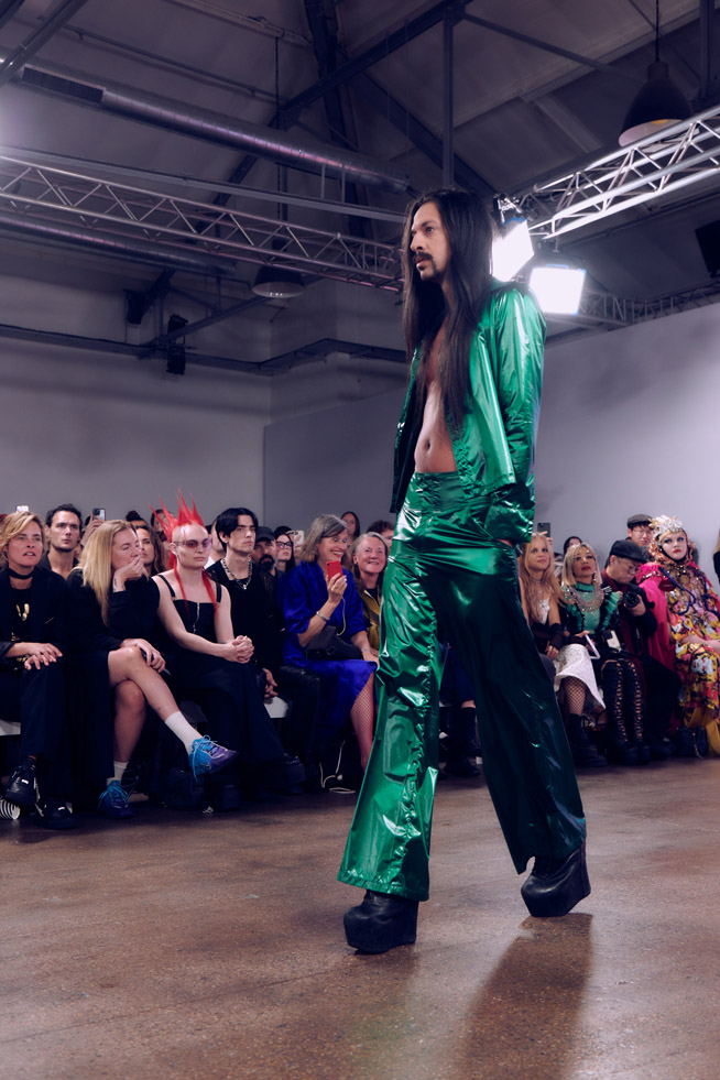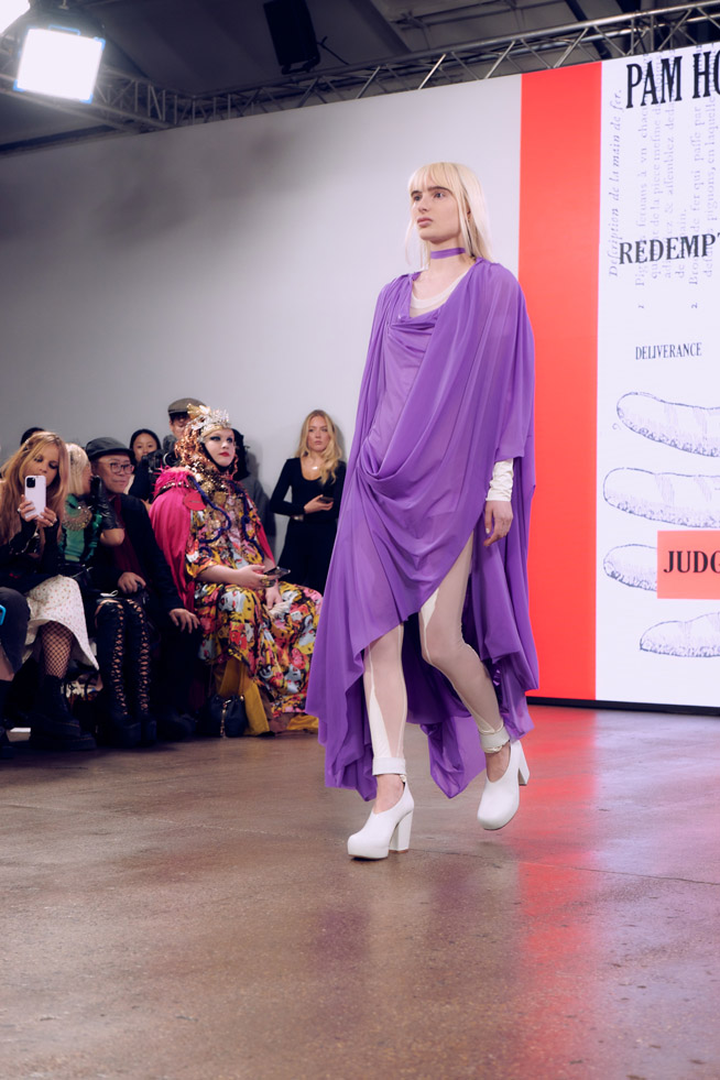 Pam champions the unconventional and proudly wears her principles, symbolised by ‘honour’ and ‘justice’ as tattoos. Her timeless creations transcend seasons, reflecting radical beauty and chaos at society’s core. Her almost four-decade career stands as a testament to her enduring influence. She champions the unconventional and the extraordinary, offering a lifeline to the underappreciated and marginalised, thriving in the midst of chaos, disruption, and disorder. She is a vivid embodiment of flamboyance, frenzy, and fearlessness.