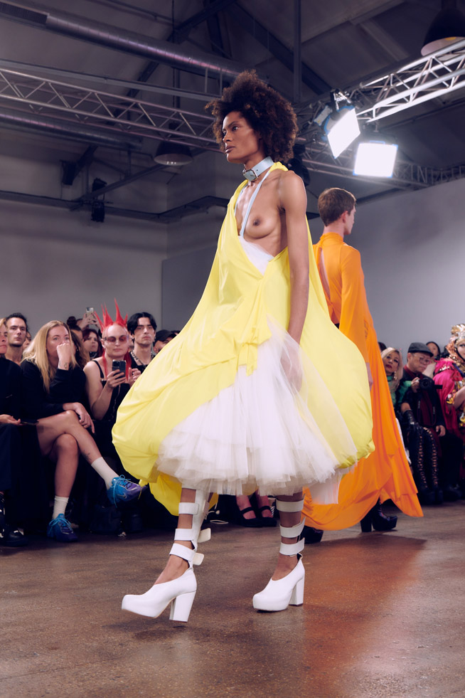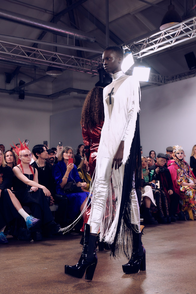 Pam Hogg’s SS24 collection, titled ‘Apocalypse,’ will be featured as part of the official schedule of London Fashion Week this September, in collaboration with Fashion Scout. The finale is set to symbolise the return of the Goddess, embodying beauty and harmony across all races and beliefs. It signifies an end to conflict and avarice.
