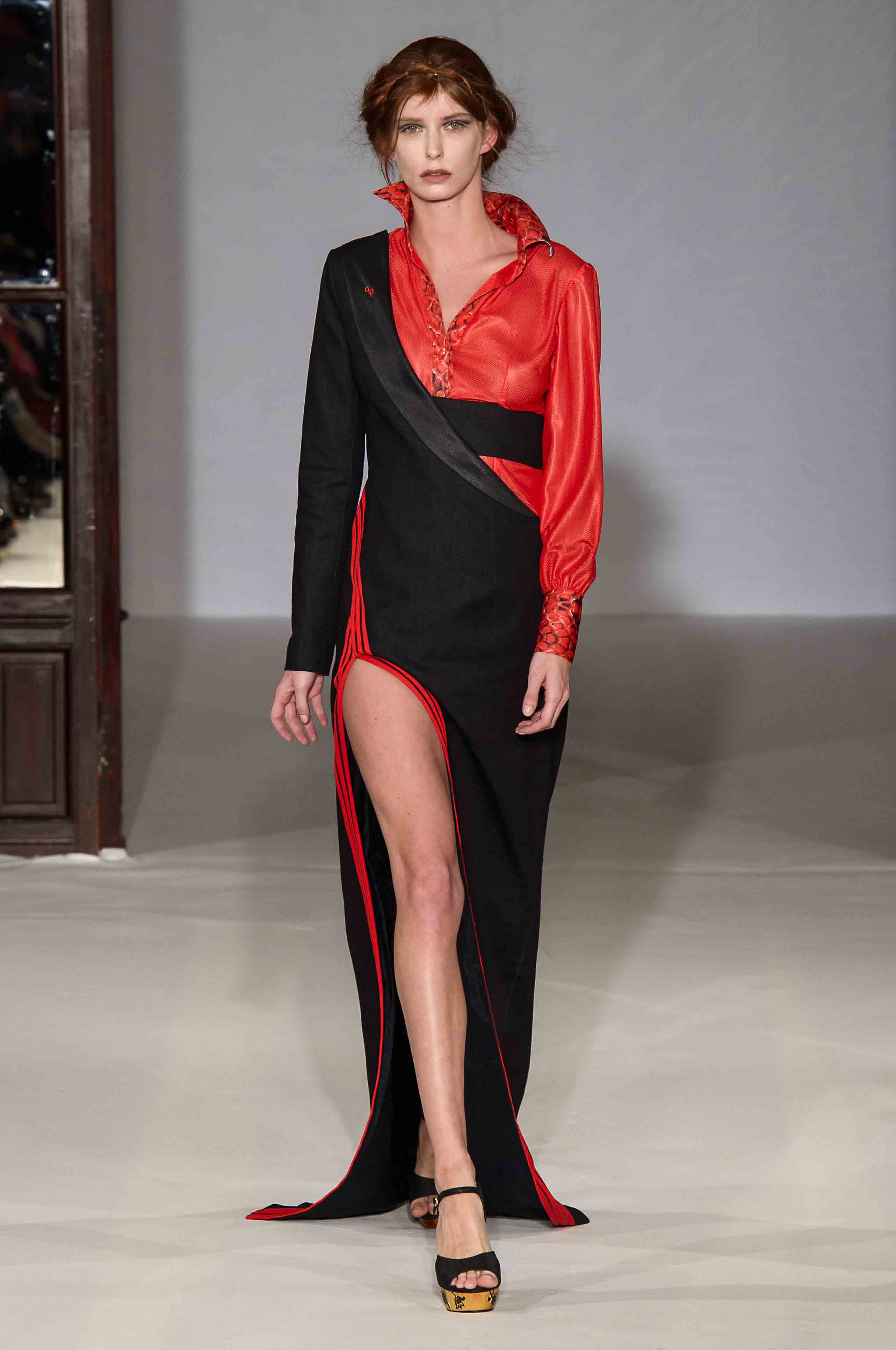 Symbol of fortune in Asia, lucky charm, infinite erected towards the sky, Patrick Pham is fascinated by the number 8 because of its plenitude and its perfection. This collection augurs well: Patrick mixed his asian traditions, the french-vietnamese designer changed radically his vision about the couture, including an insolent modernity, with a touch of humour, literarily hijacking the sport materials, but still keeping his lines and shapes who belong only to him.