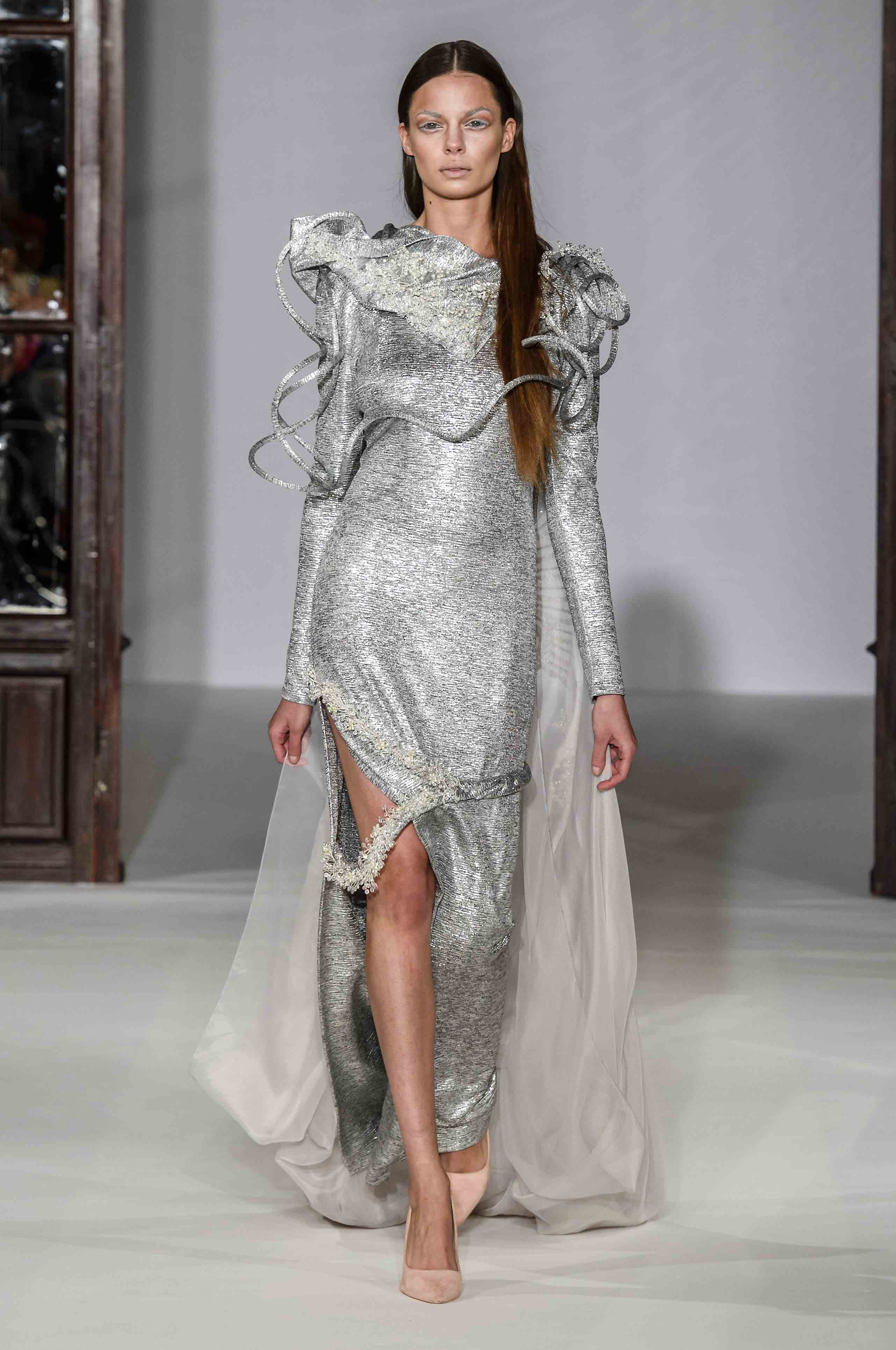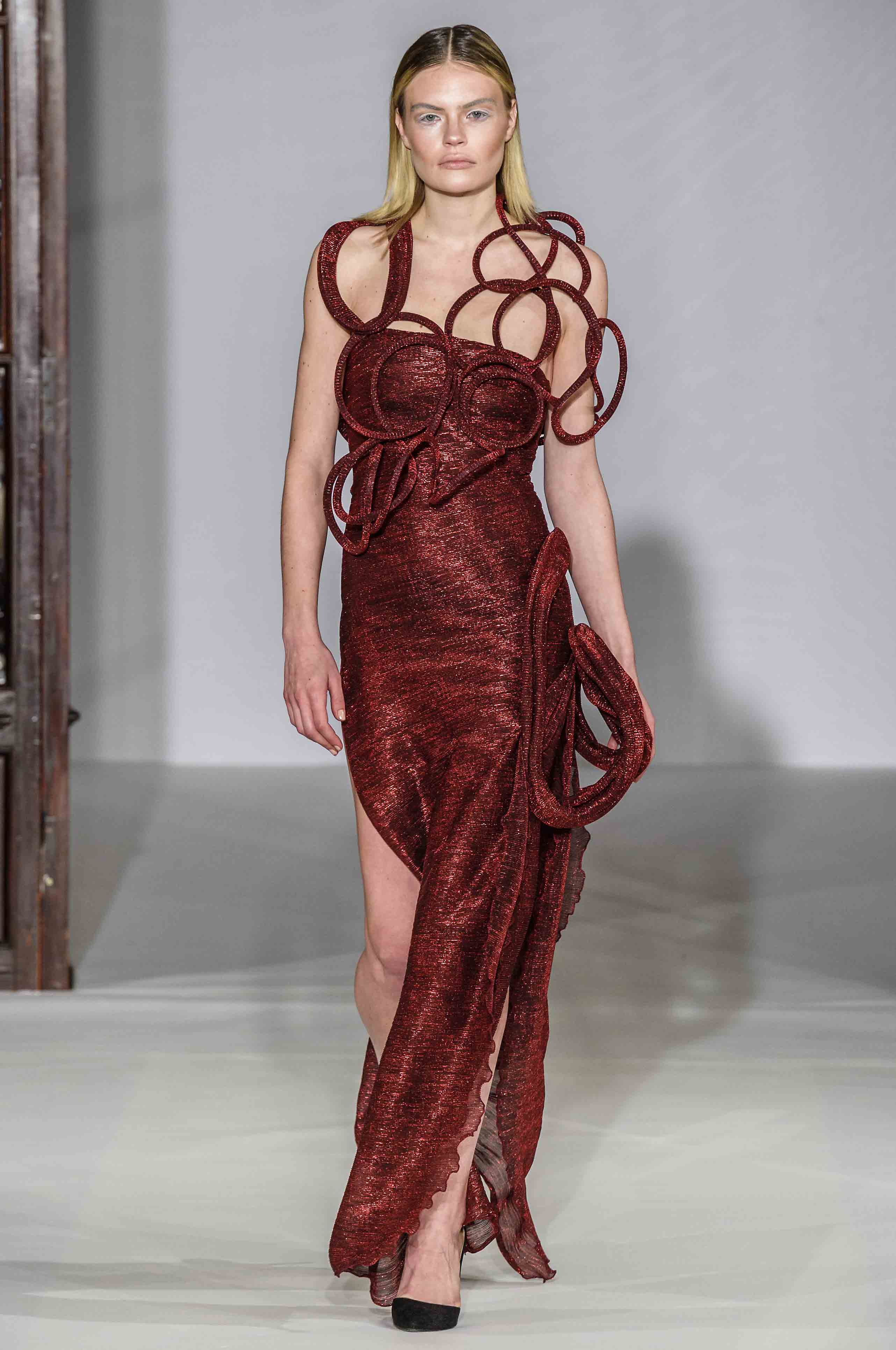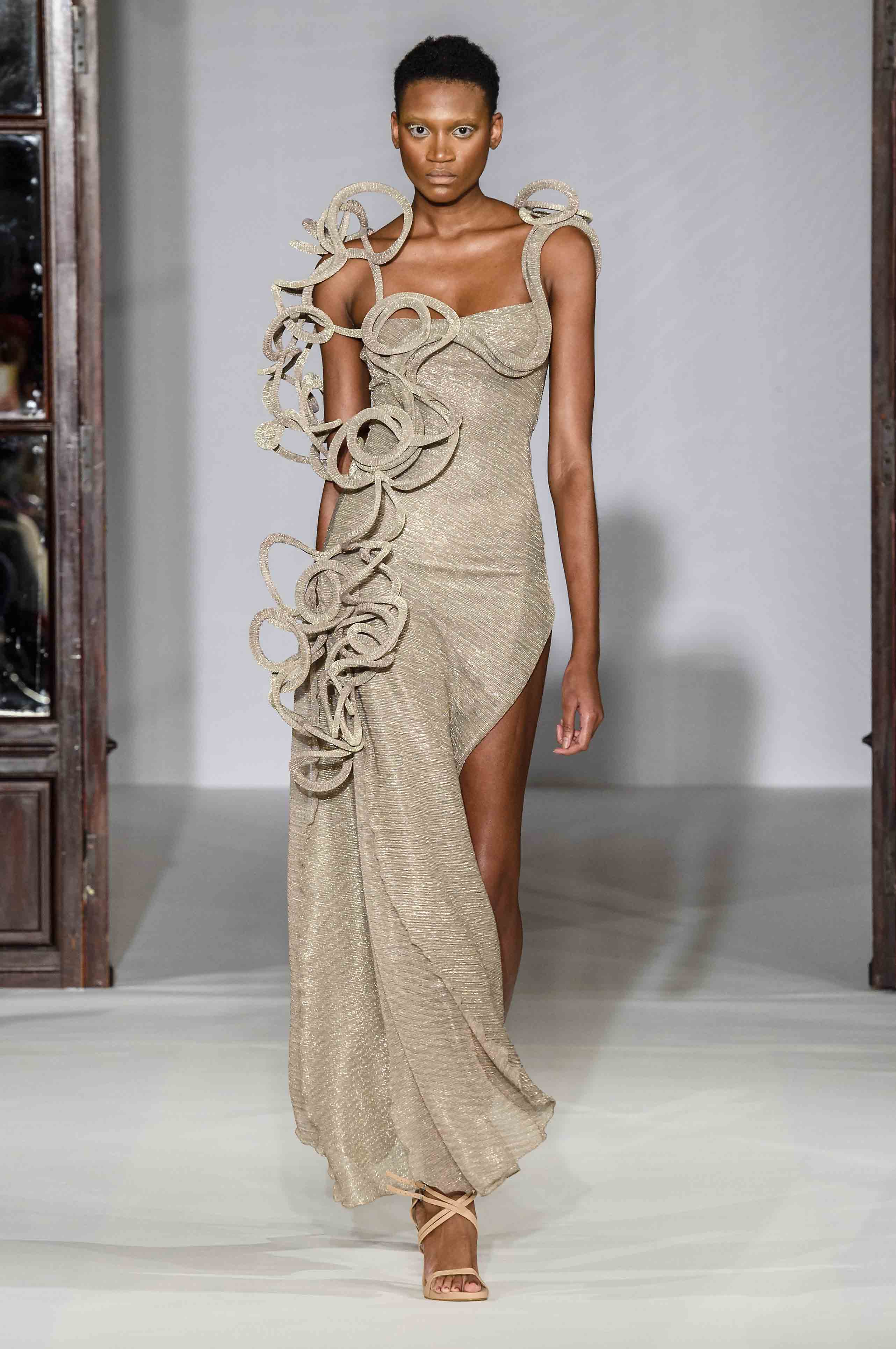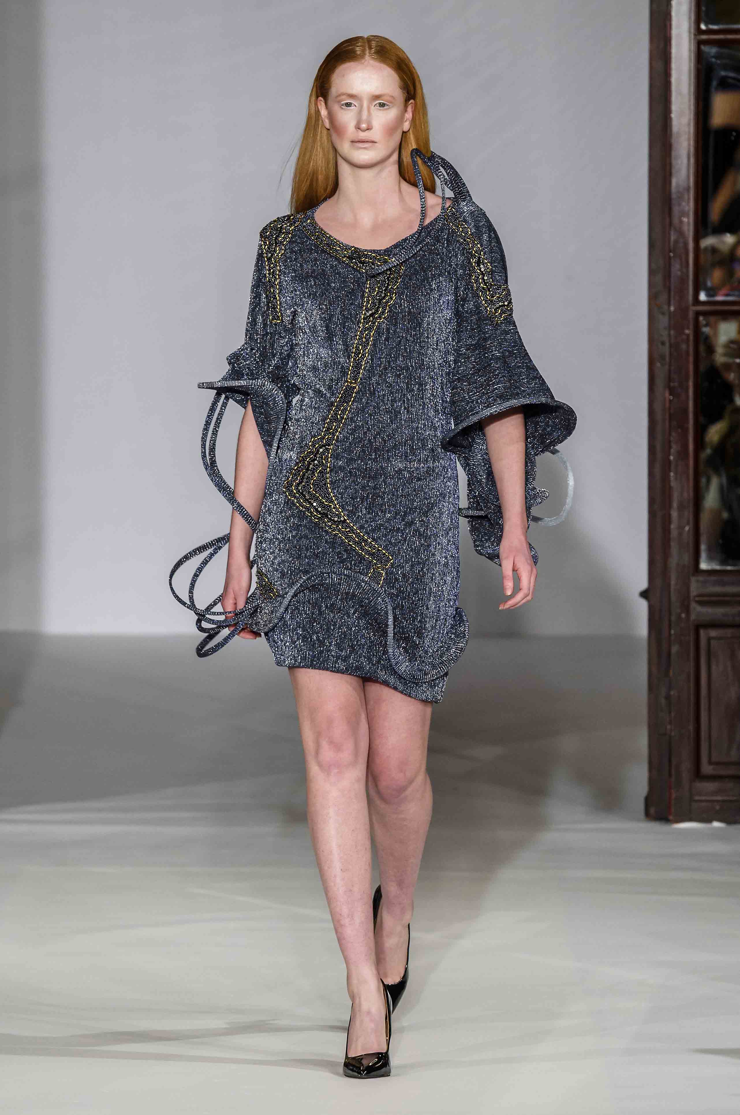 Patuna delivers us an extravagant spring summer 2019 collection, with dresses who perfectly fit the feminine curves, made with « satellite-materials » around the body as an astral woman, fatal but still powerful.