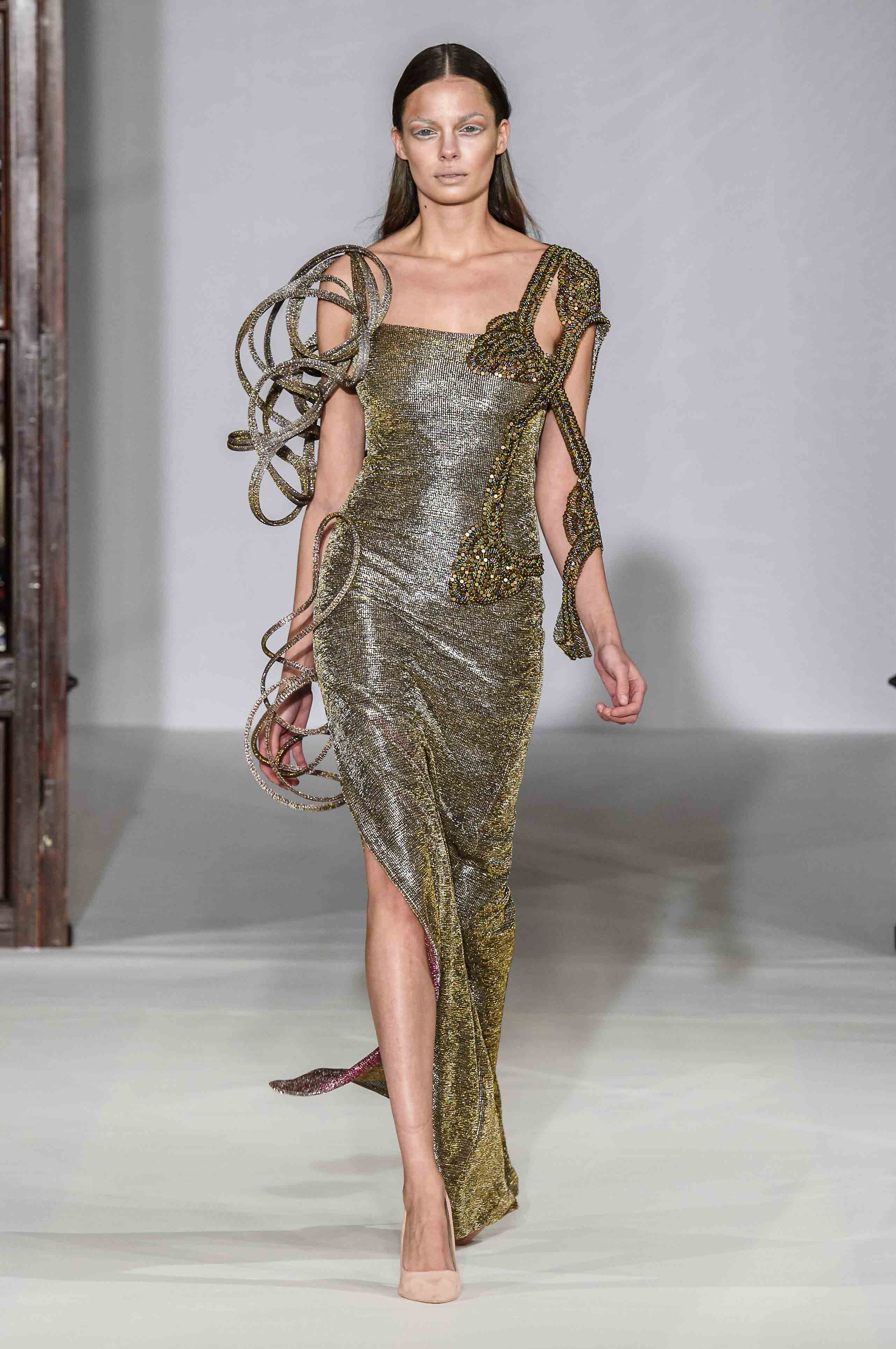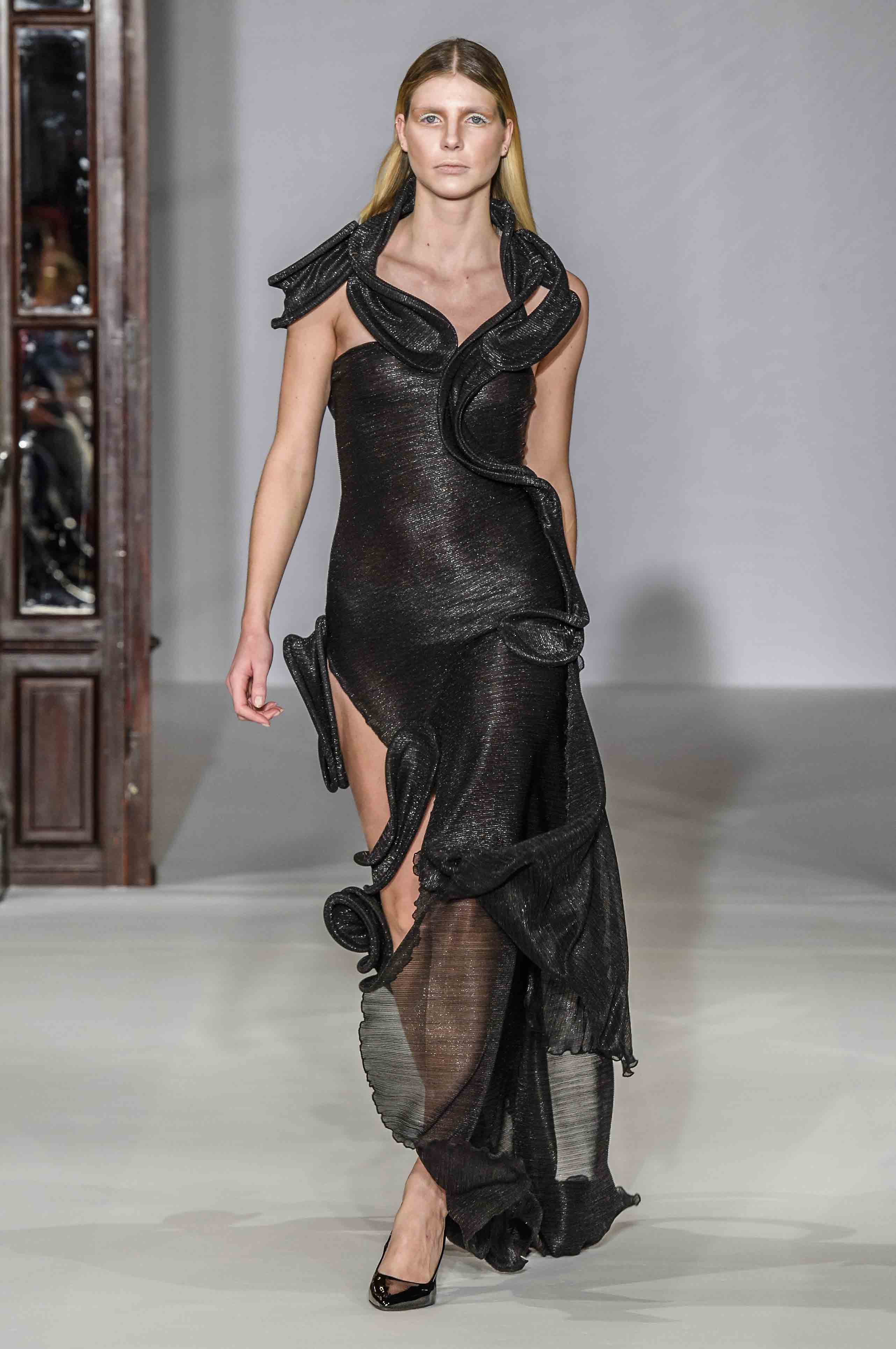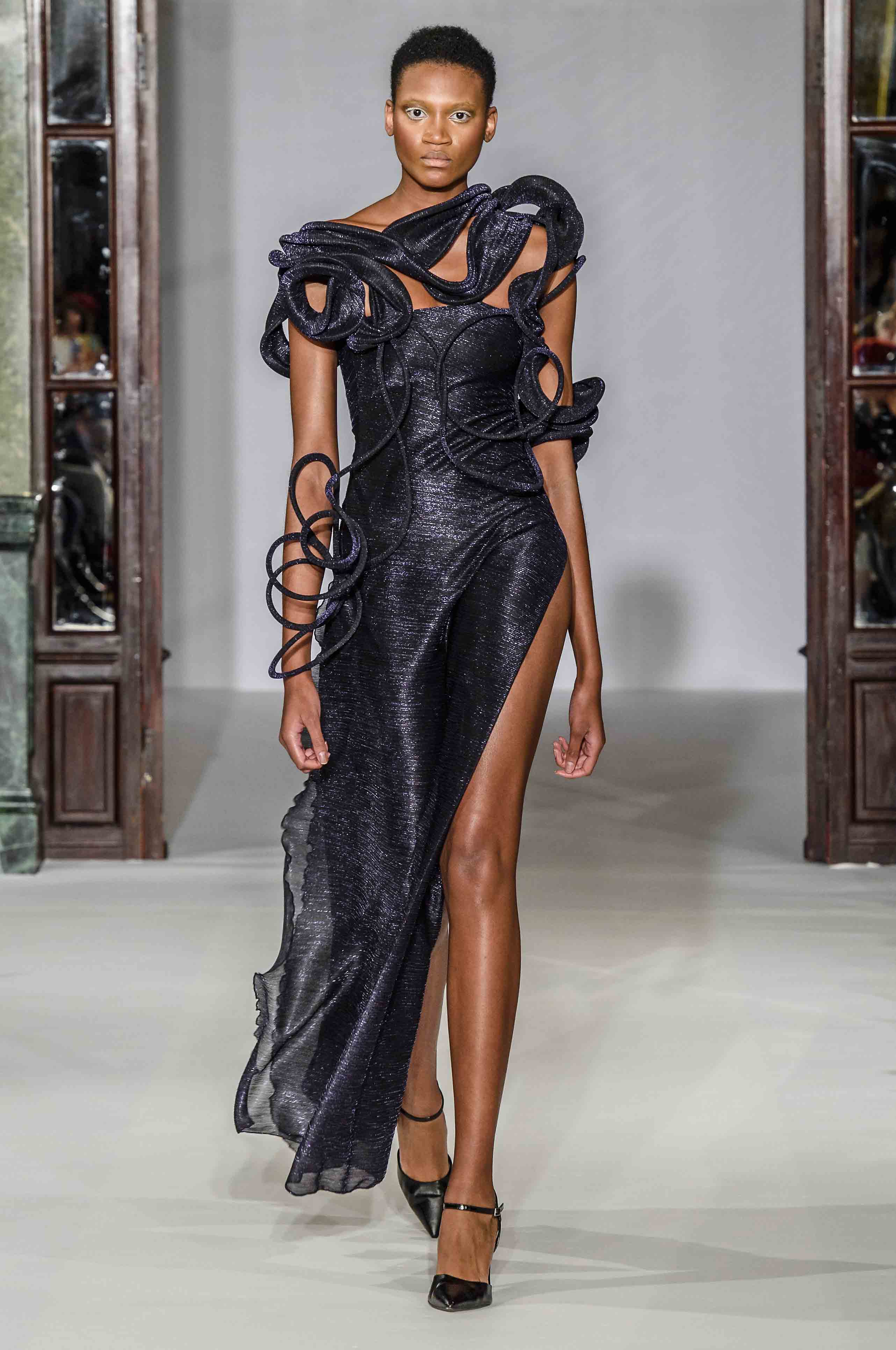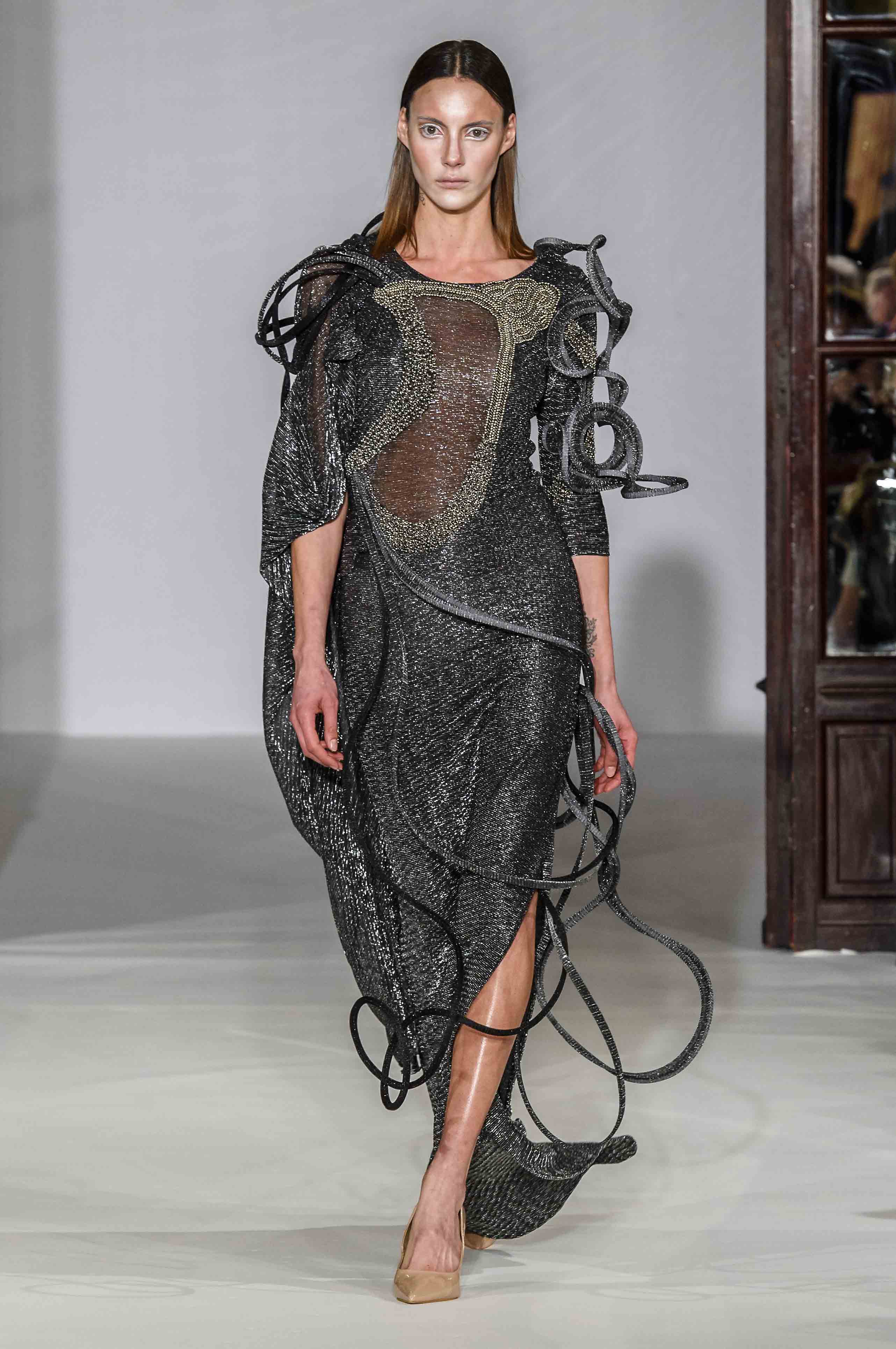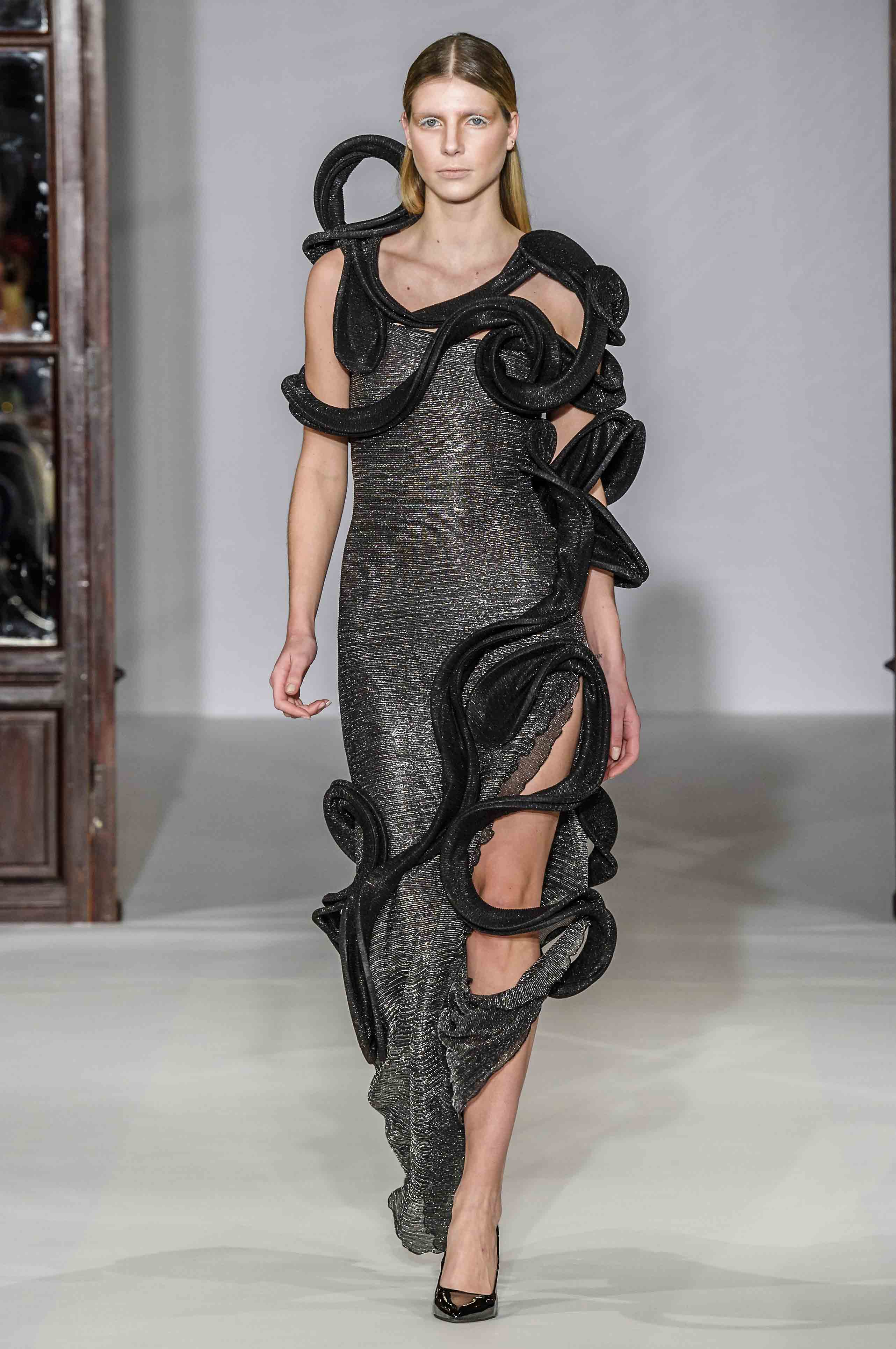 Patuna delivers us an extravagant spring summer 2019 collection, with dresses who perfectly fit the feminine curves, made with « satellite-materials » around the body as an astral woman, fatal but still powerful.