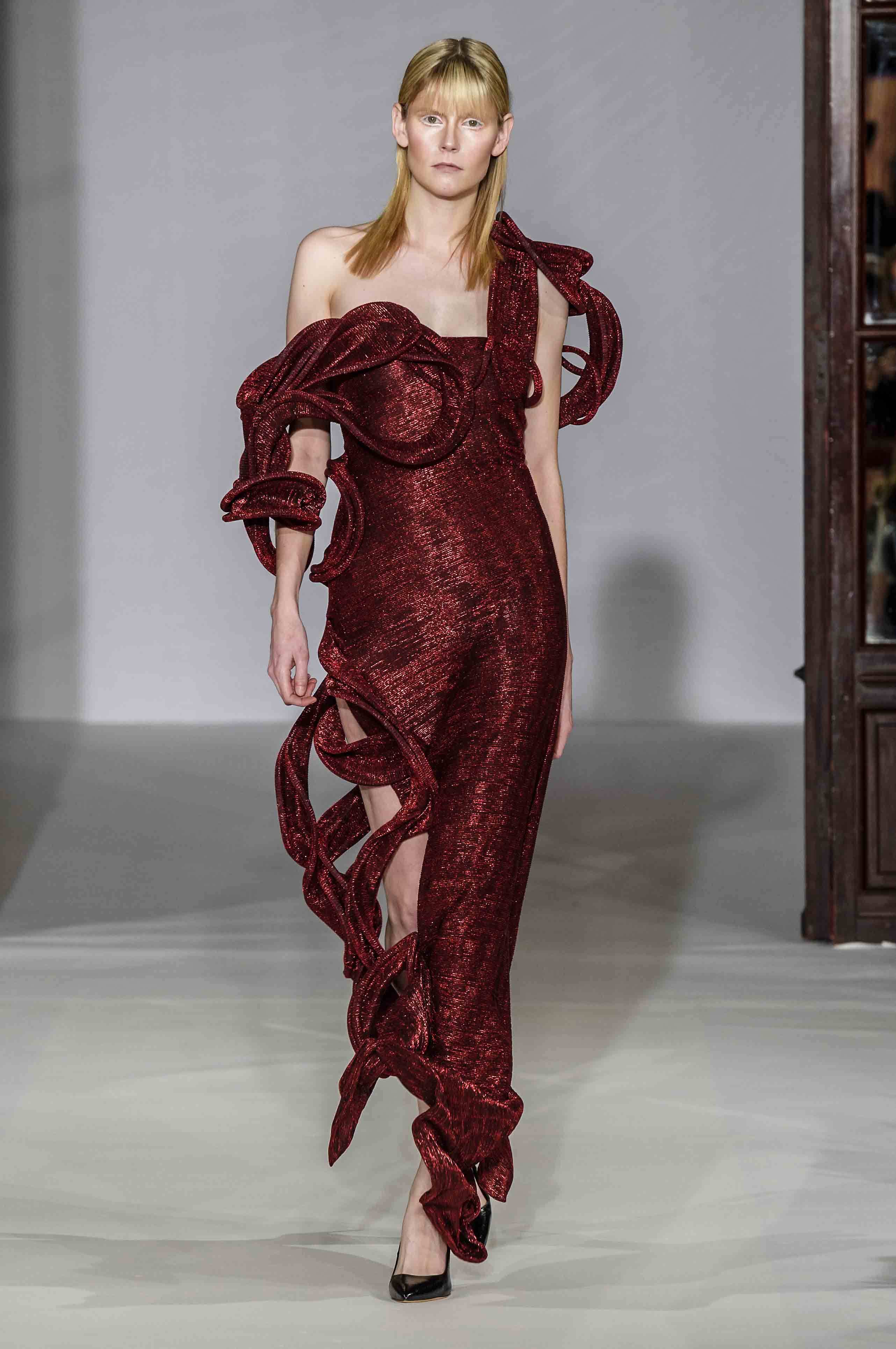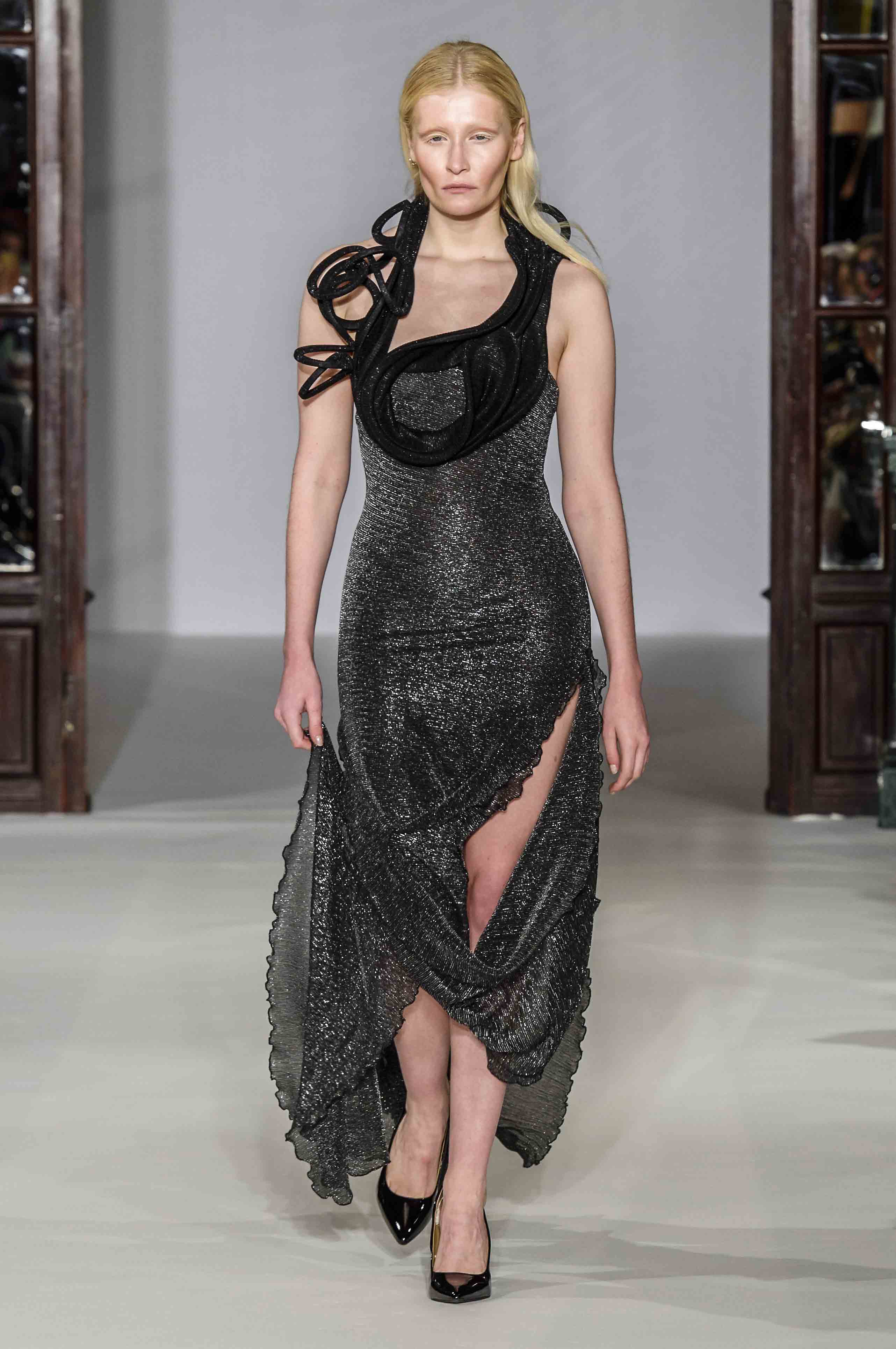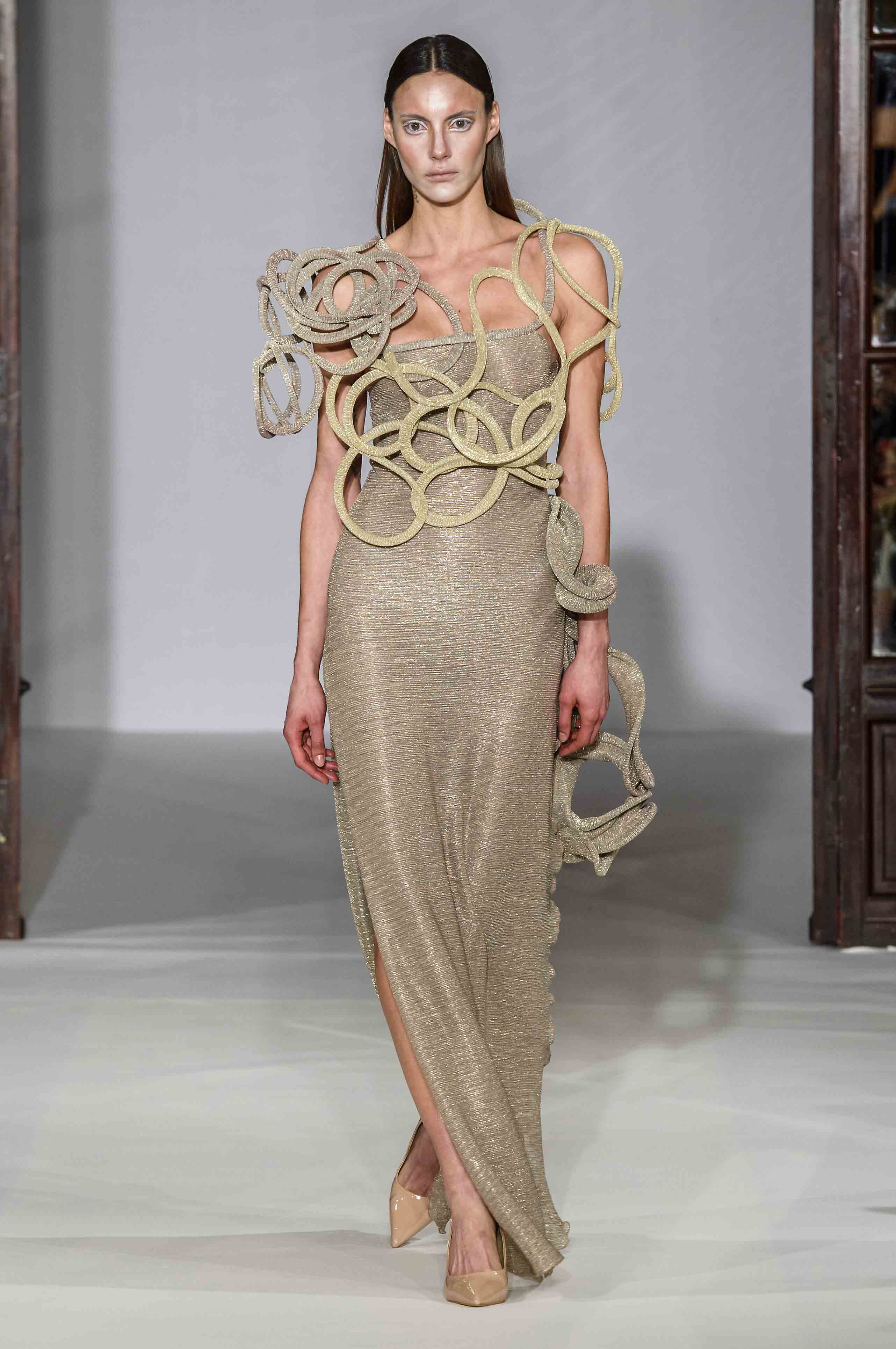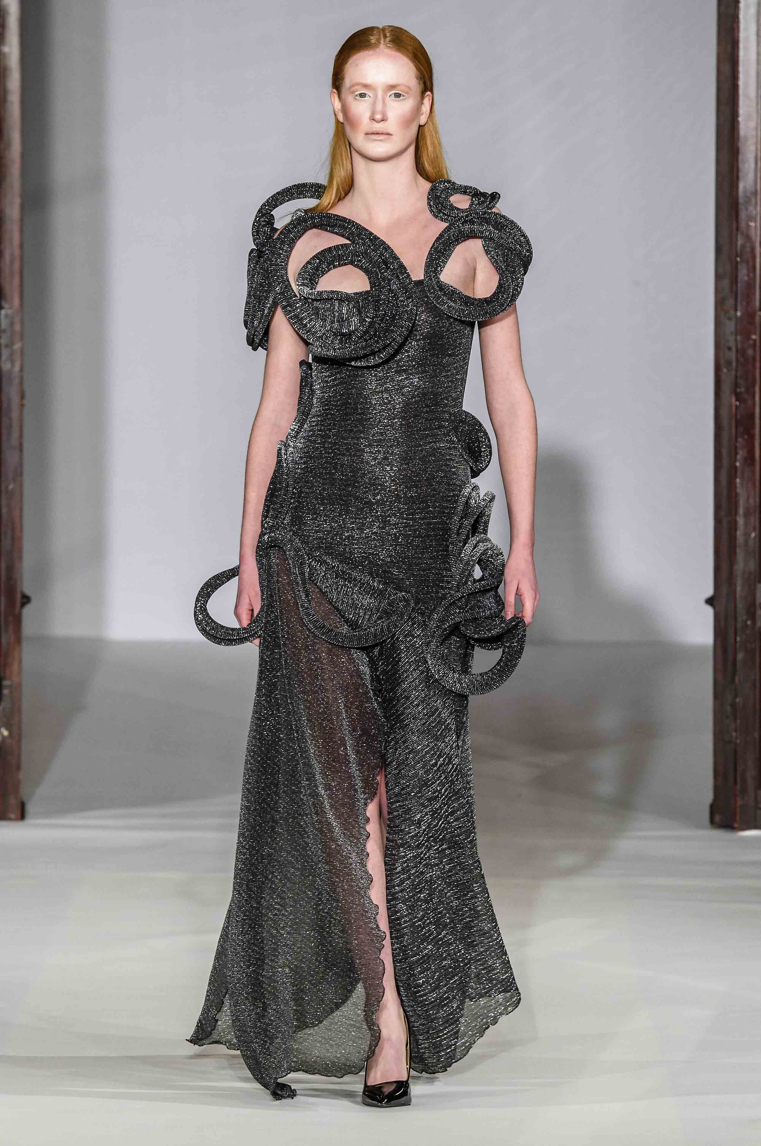 Patuna delivers us an extravagant spring summer 2019 collection, with dresses who perfectly fit the feminine curves, made with « satellite-materials » around the body as an astral woman, fatal but still powerful.
