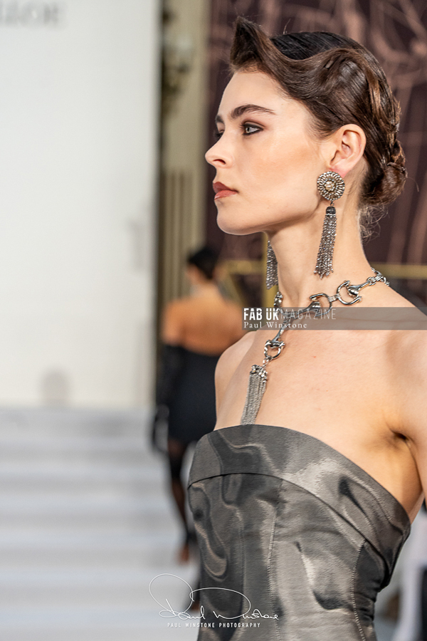 For the third consecutive season, the Paul Costelloe house continued its collaboration with jewellery designer PK Bijoux. Their sculptural, one-of-a-kind pieces, which repurpose vintage elements such as medals, chains, and buckles, masterfully blur the lines between heritage and bold modern design.
