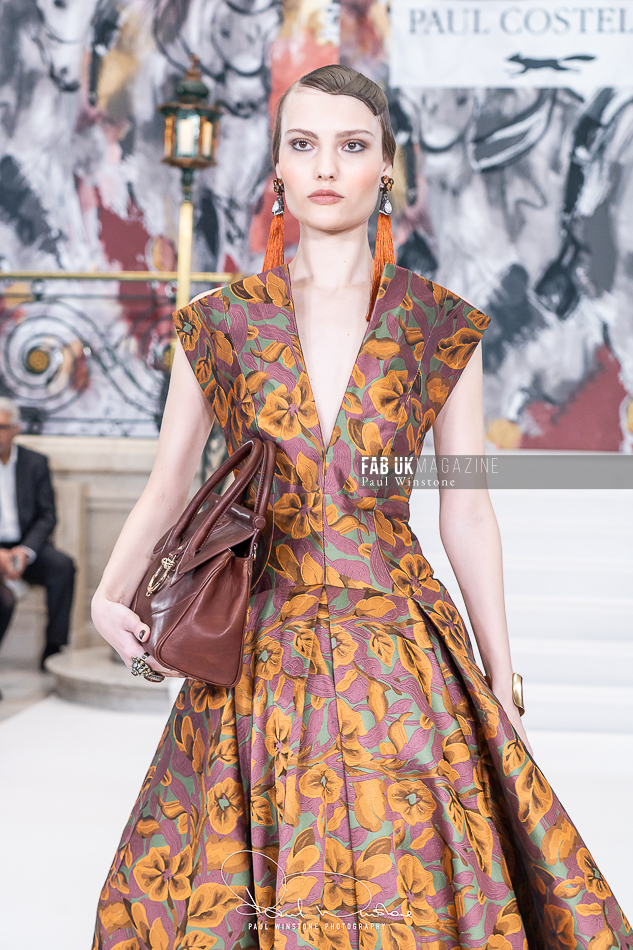 The collection featured a rich palette of autumnal hues, intricate textures, and sophisticated silhouettes, drawing inspiration from historical elegance and modern femininity. Models graced the catwalk in structured coats, flowing gowns, and statement accessories, captivating the audience with Costelloe’s signature craftsmanship.