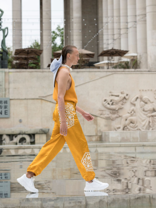 Inspired by the trappings of the various cultures along the Silk Route, French artistic director Louis – Gabriel Nouchi was able to reinterpret the codes of Joeone – synonymous with “pants” in China – to create a living travel diary that bridges the gap between the two cultures.