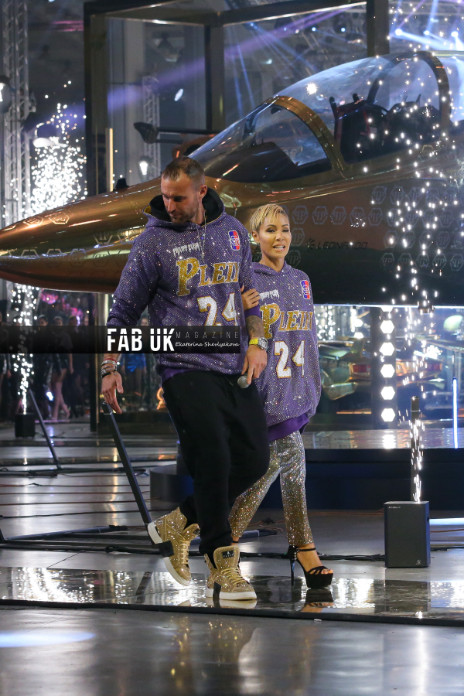 The final part of the show was praising the late basketball player Kobe Bryant when Plein himself together with Jada Pinkett Smith, Olivia Culpo and other models walked the runway wearing basketball outfits made by the designer as a tribute to the famous sportsman.