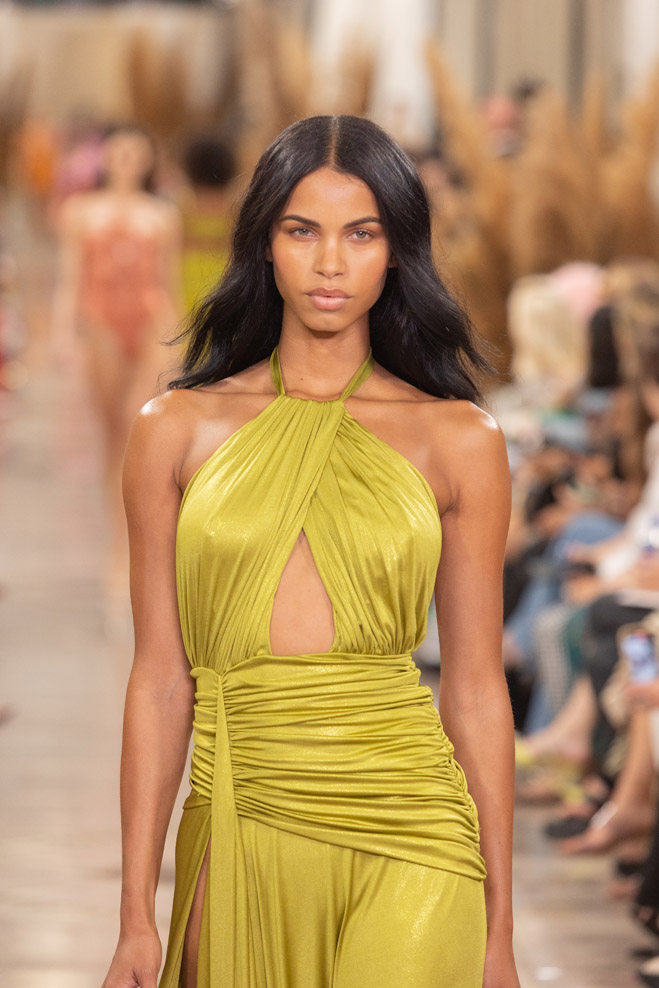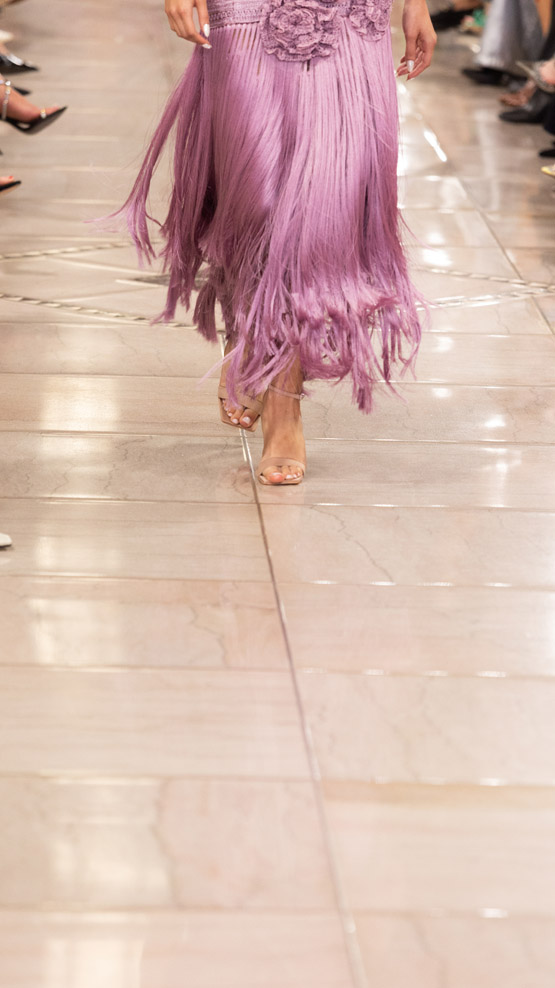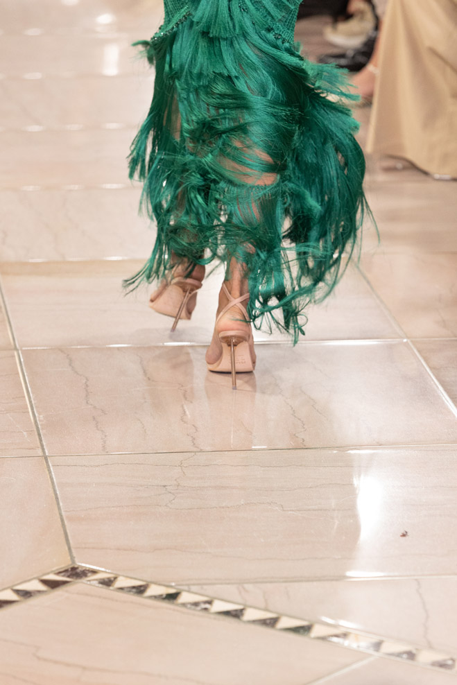 The colour palette is a stunning array of emerald green, purple, transparent, lemon, orchid, nude, and white. These designs embody the harmonious blend of Piazza’s timeless style and PatBO’s fashion DNA, using high-quality materials such as satin, leather, vinyl, and crystals to ensure both durability and sophistication.