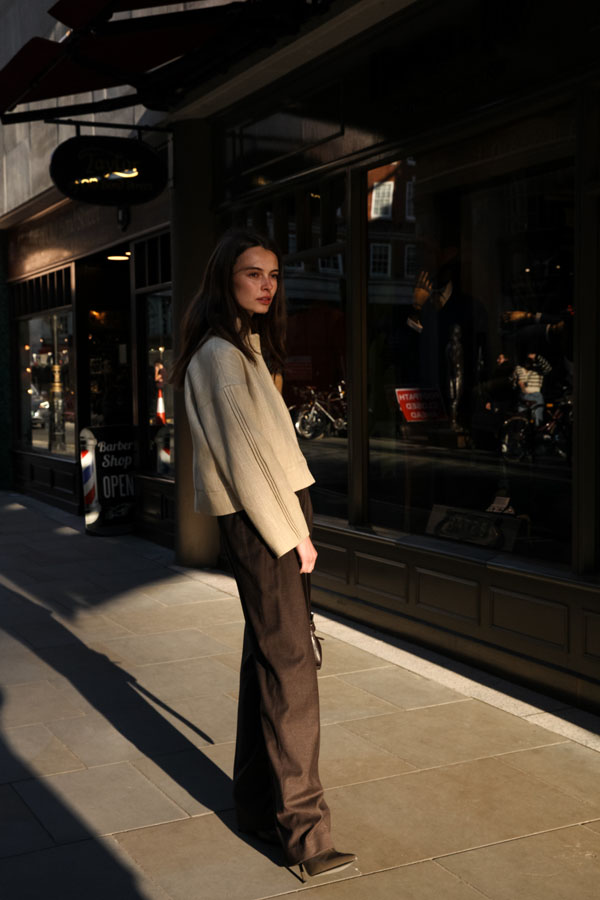 The third collection named “Rhythm” presents a range of 9 designs in the finest textiles. Rhythms are everywhere where there are people, nature and space, with their relationship taking the form of rhythms; often spontaneously experienced and manifested. Fascinated by the urban rhythms of the WOMAN, the collection depicts the versatility, “no-same” path taking them where they want to be, following their own and unique rhythm. The collection features neutral, earthy colours in browns, white and beige depicting the dynamism of light and shadow and the interplay between structure within a contemporary urban expression.