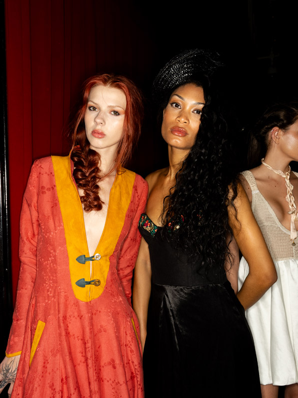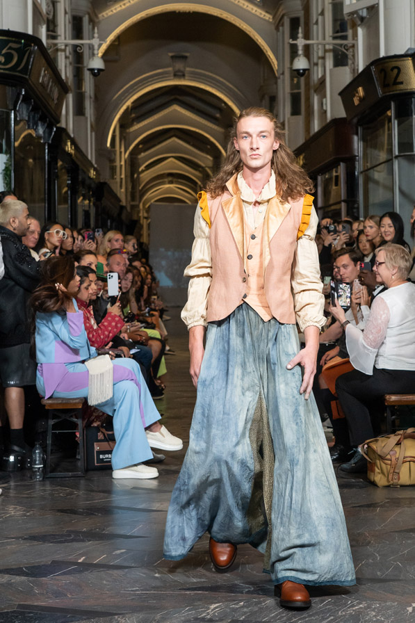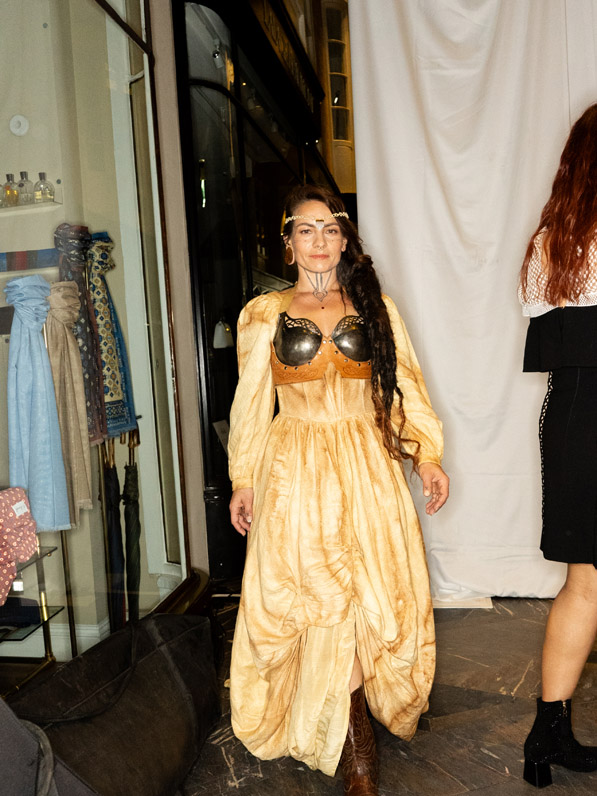 The new collection is based on the idea it is best to be naked than clothed in harmful synthetics. A call back to nature..stripping back down to the nude… plant fabrics & plant dyes from his farm. Infused with the Celtic & Picts spirit in the Cotswolds with the Native American Heritage of TN Mr. Garner presents.