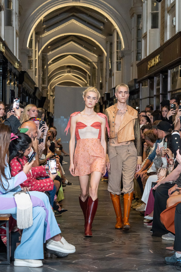 The new collection is based on the idea it is best to be naked than clothed in harmful synthetics. A call back to nature..stripping back down to the nude… plant fabrics & plant dyes from his farm. Infused with the Celtic & Picts spirit in the Cotswolds with the Native American Heritage of TN Mr. Garner presents.